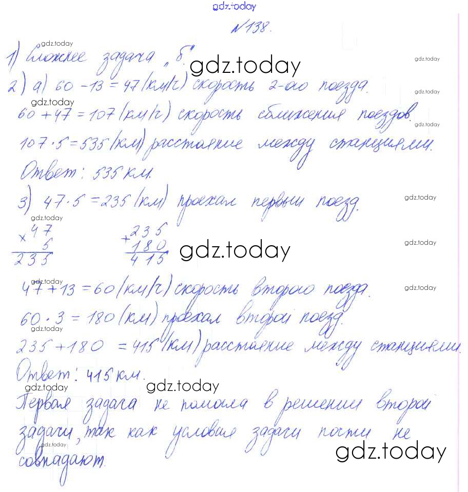 Ответы к Решение к упражнениям 138 Учебнику по Математике для 4 класса Аргинская, Ивановская Фёдоров УМК 2014