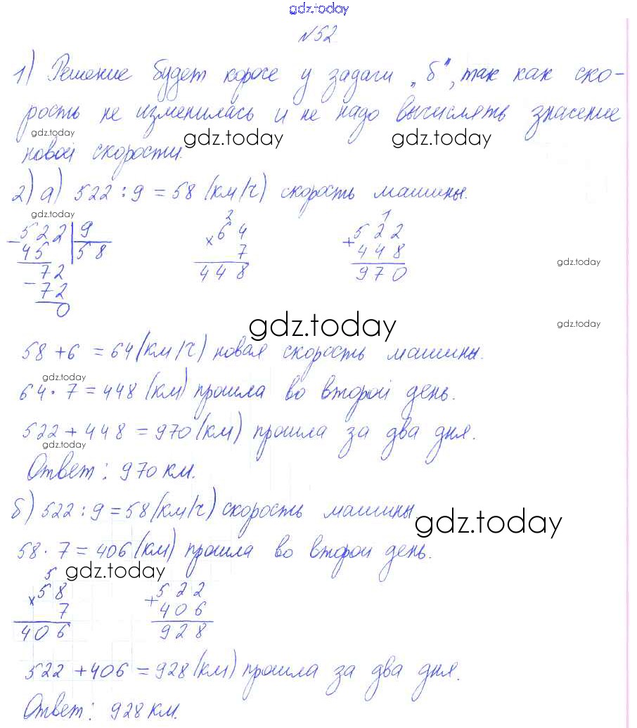 Ответы к Решение к упражнениям 52 Учебнику по Математике для 4 класса Аргинская, Ивановская Фёдоров УМК 2014