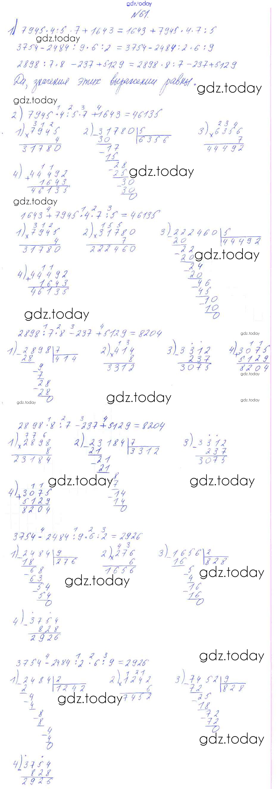 Ответы к Решение к упражнениям 61 Учебнику по Математике для 4 класса Аргинская, Ивановская Фёдоров УМК 2014