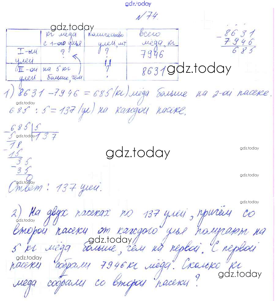Ответы к Решение к упражнениям 74 Учебнику по Математике для 4 класса Аргинская, Ивановская Фёдоров УМК 2014