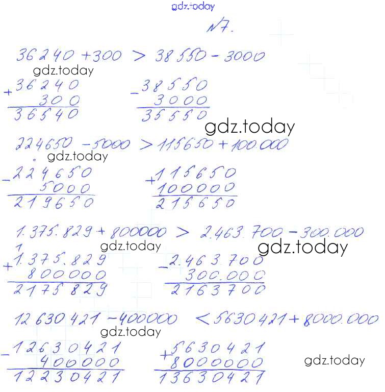 Ответы к Складываем и вычитаем большие числа Решение к части 1 7 Учебнику по Математике для 4 класса Башмаков, Нефедова Аст/Астрель Планета знаний 2012