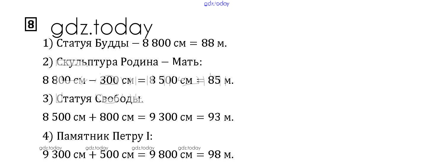 На страницах сайта gdz.today вы найдете учебный и вспомогательный материал, направленный на улучшения знаний школьной программы. ГДЗ - онлайн мир знаний Метр и сантиметр Решение к части 1 8 Учебнику по Математике для 4 класса Башмаков, Нефедова Аст/Астрель Планета знаний 2012