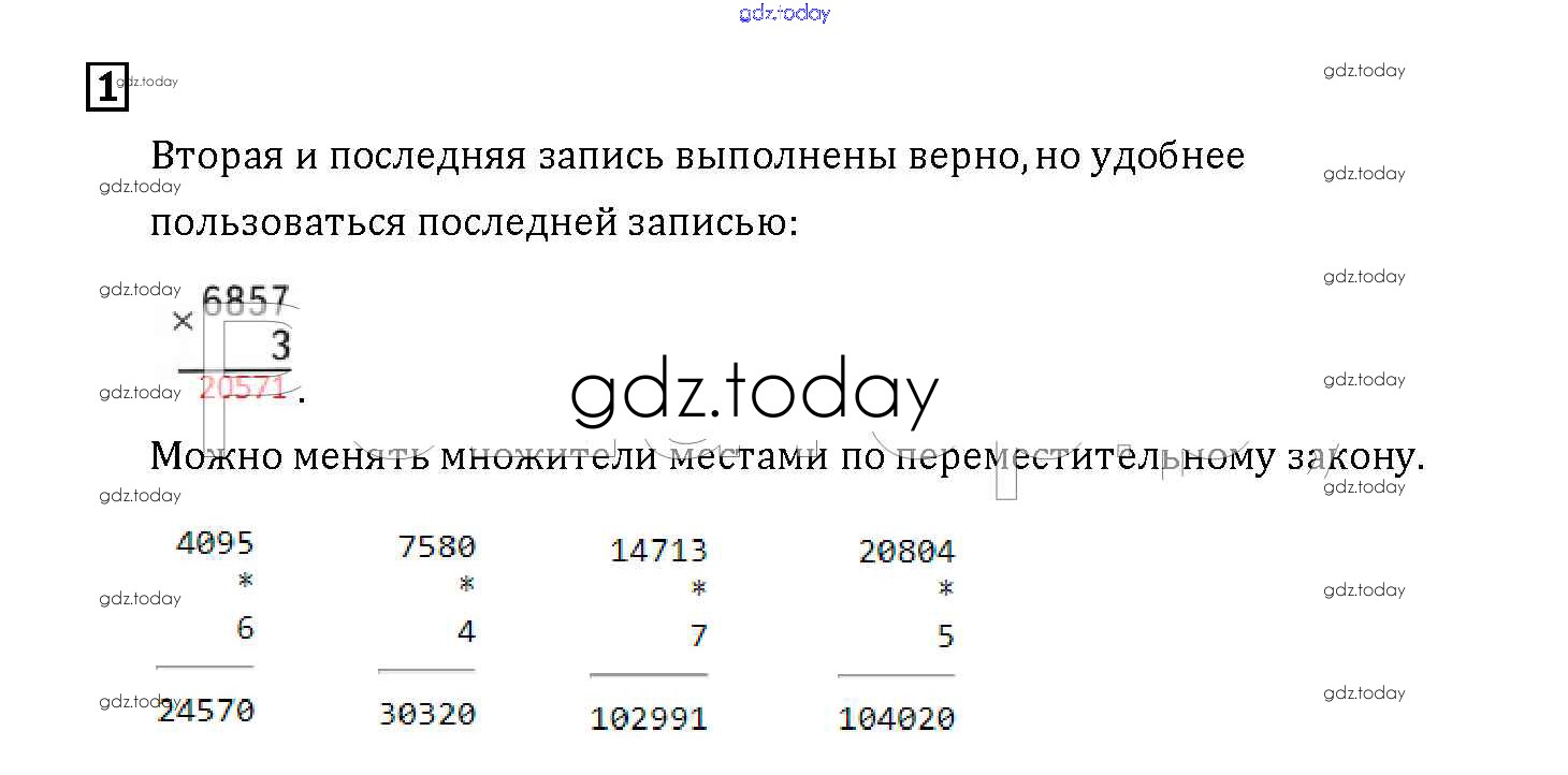 На страницах сайта gdz.today вы найдете учебный и вспомогательный материал, направленный на улучшения знаний школьной программы. ГДЗ - онлайн мир знаний Свойства умножения Решение к части 1 1 Учебнику по Математике для 4 класса Башмаков, Нефедова Аст/Астрель Планета знаний 2012