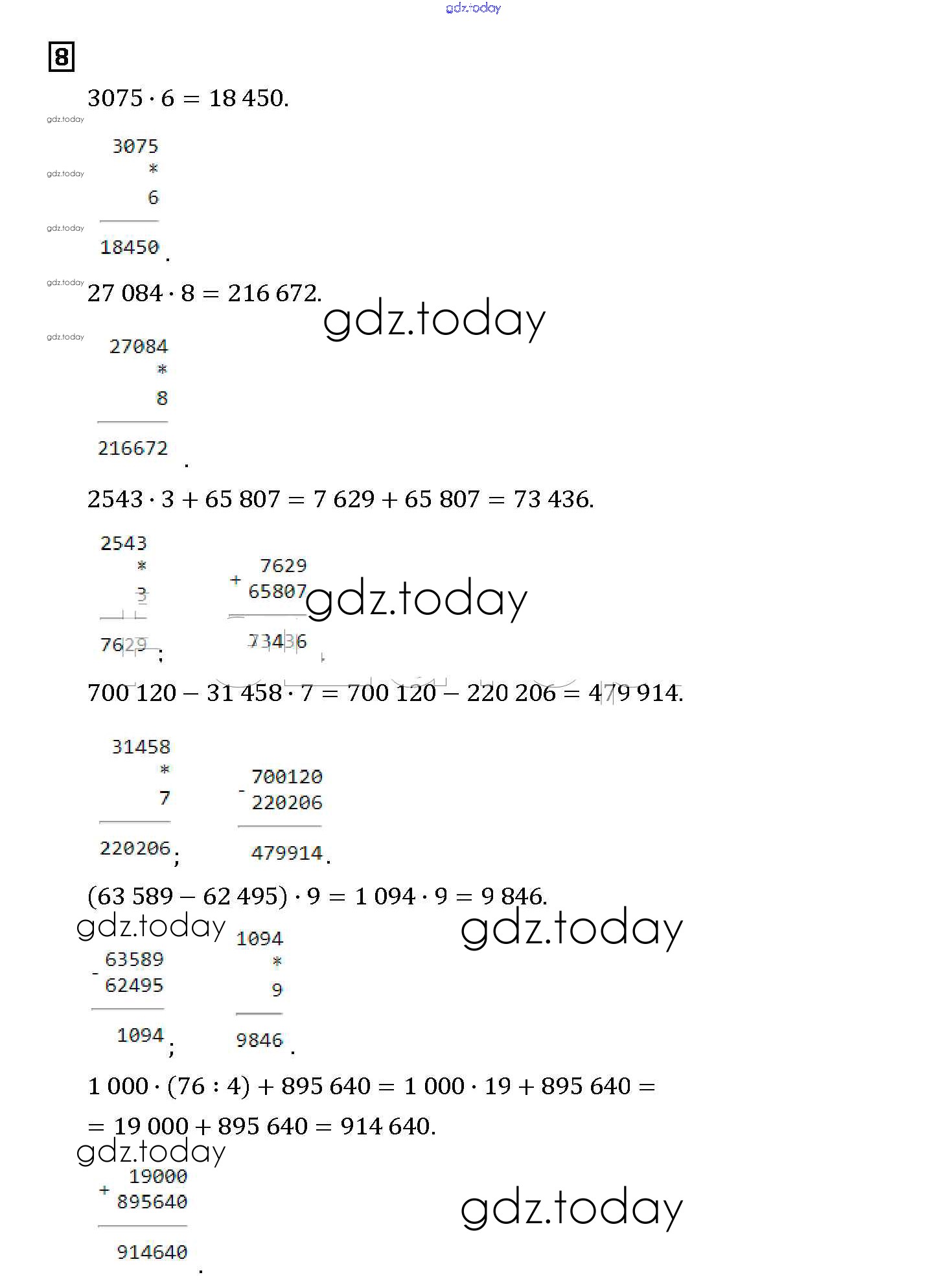 На страницах сайта gdz.today вы найдете учебный и вспомогательный материал, направленный на улучшения знаний школьной программы. ГДЗ - онлайн мир знаний Свойства умножения Решение к части 1 8 Учебнику по Математике для 4 класса Башмаков, Нефедова Аст/Астрель Планета знаний 2012