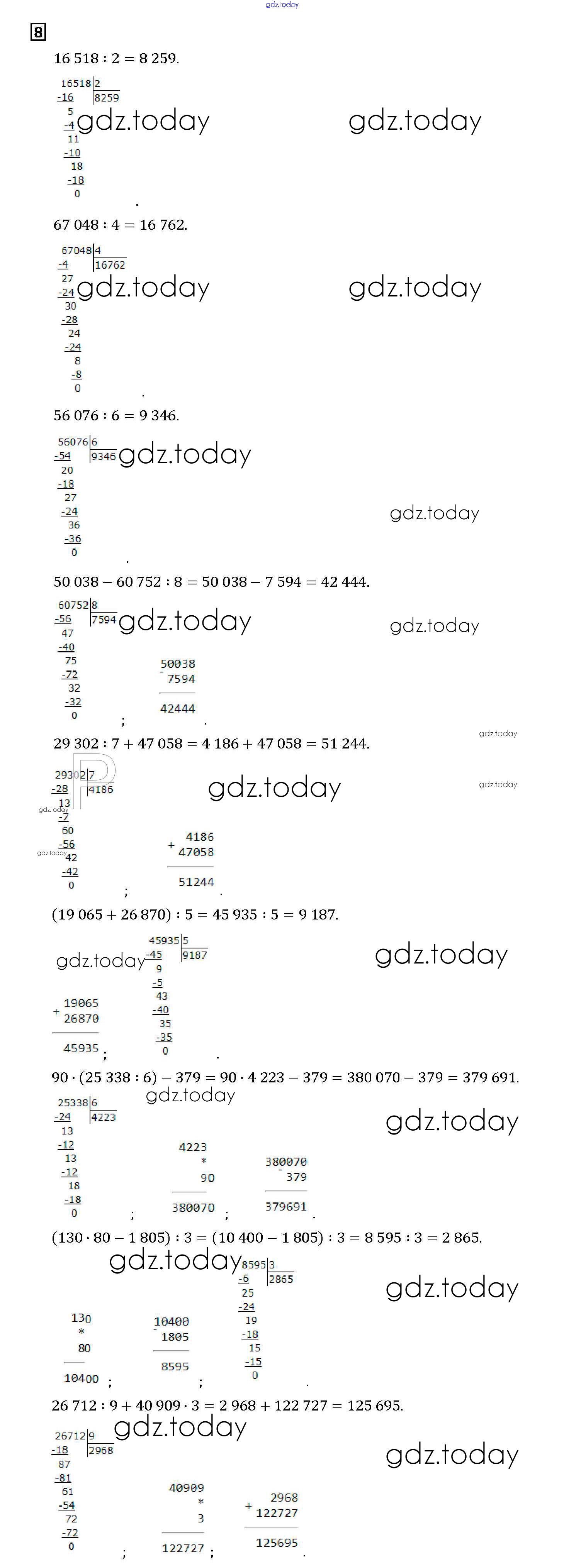 На страницах сайта gdz.today вы найдете учебный и вспомогательный материал, направленный на улучшения знаний школьной программы. ГДЗ - онлайн мир знаний Делим большие числа Решение к части 1 8 Учебнику по Математике для 4 класса Башмаков, Нефедова Аст/Астрель Планета знаний 2012