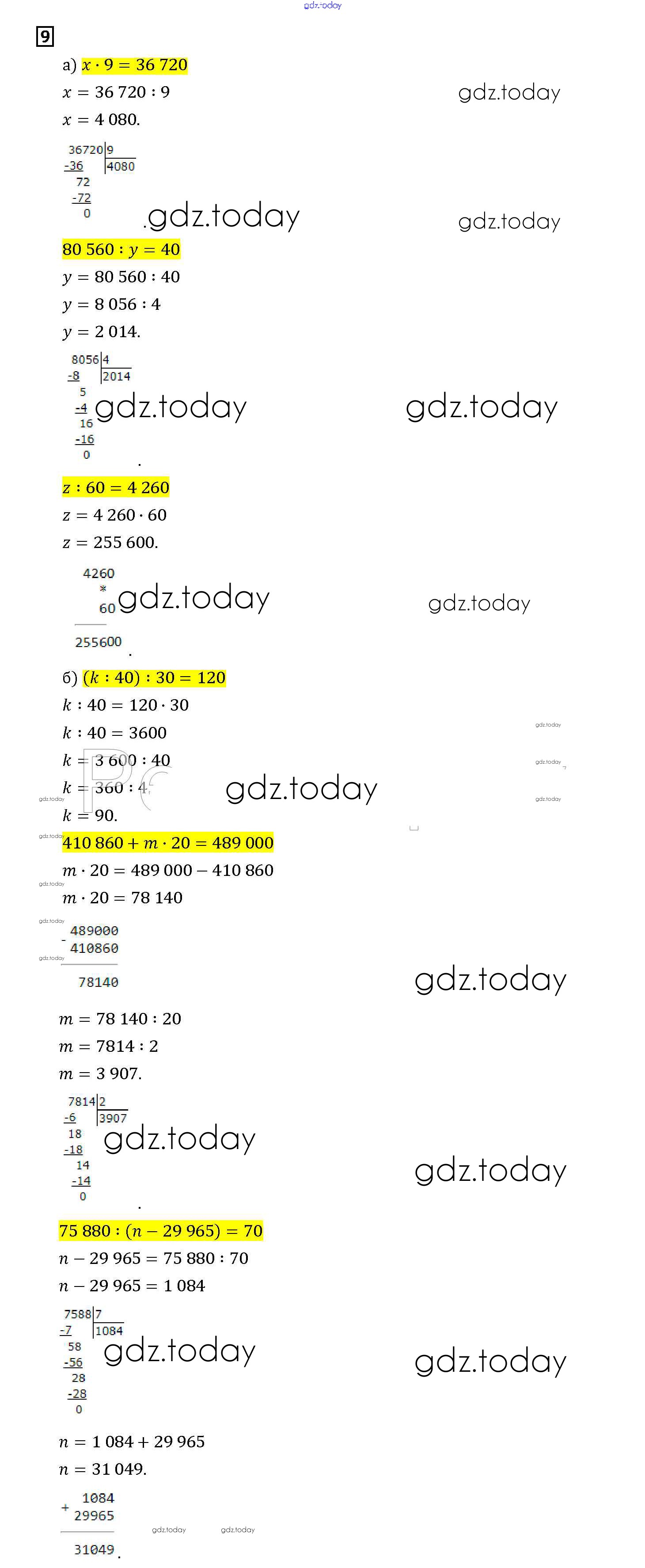Ответы к Вычисляем устно и письменно Решение к части 1 9 Учебнику по Математике для 4 класса Башмаков, Нефедова Аст/Астрель Планета знаний 2012