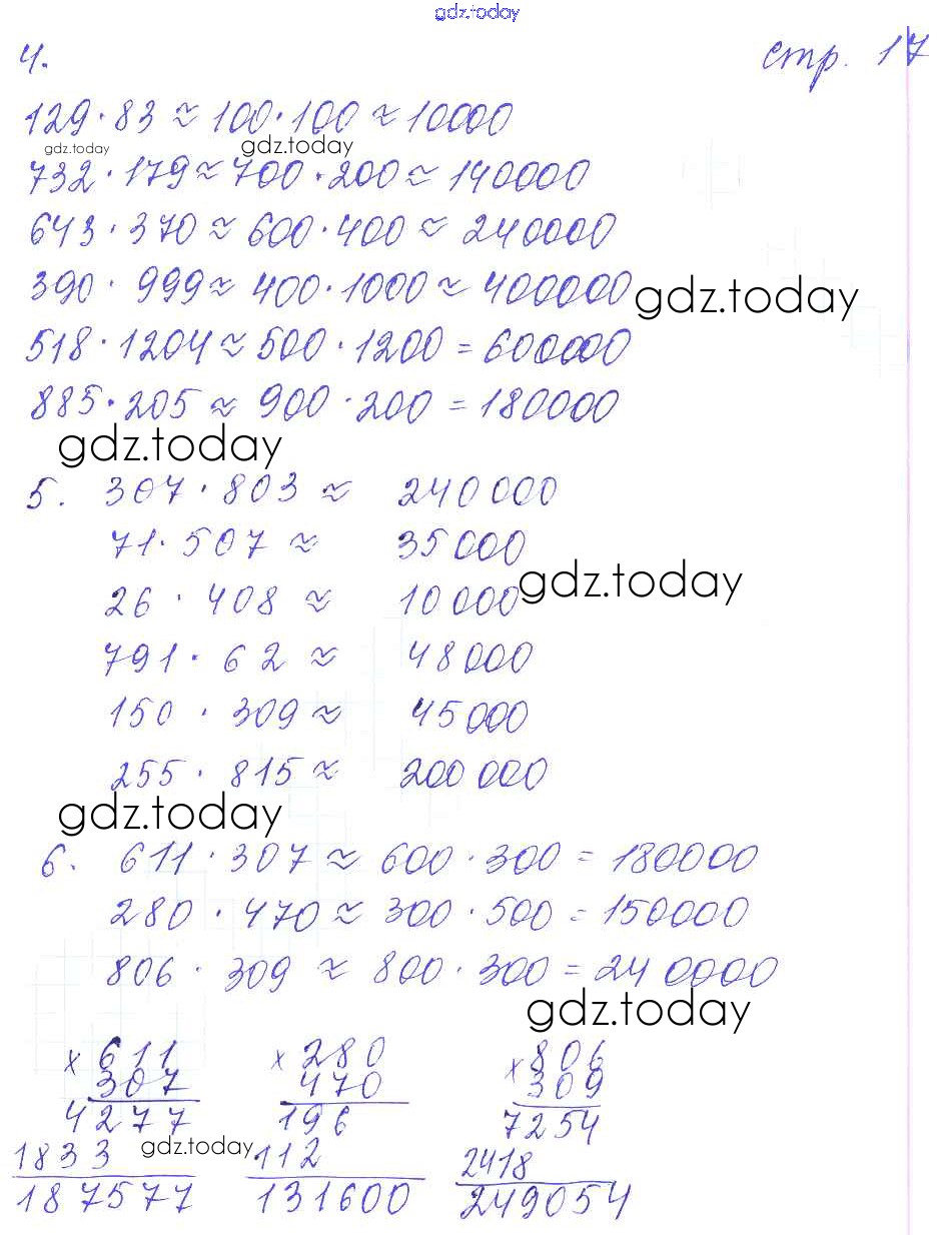 Ответы к Решение к части 2. Страницы 17 Рабочей тетради по Математике для 4 класса Башмаков, Нефедова Аст/Астрель Планета знаний 2016