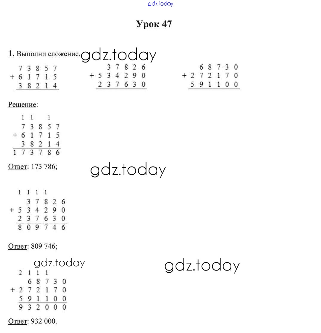 Ответы к Решение к уроку 47 1 Учебнику по Математике для 4 класса Чеботаревская, Николаева Начальная школа 2018