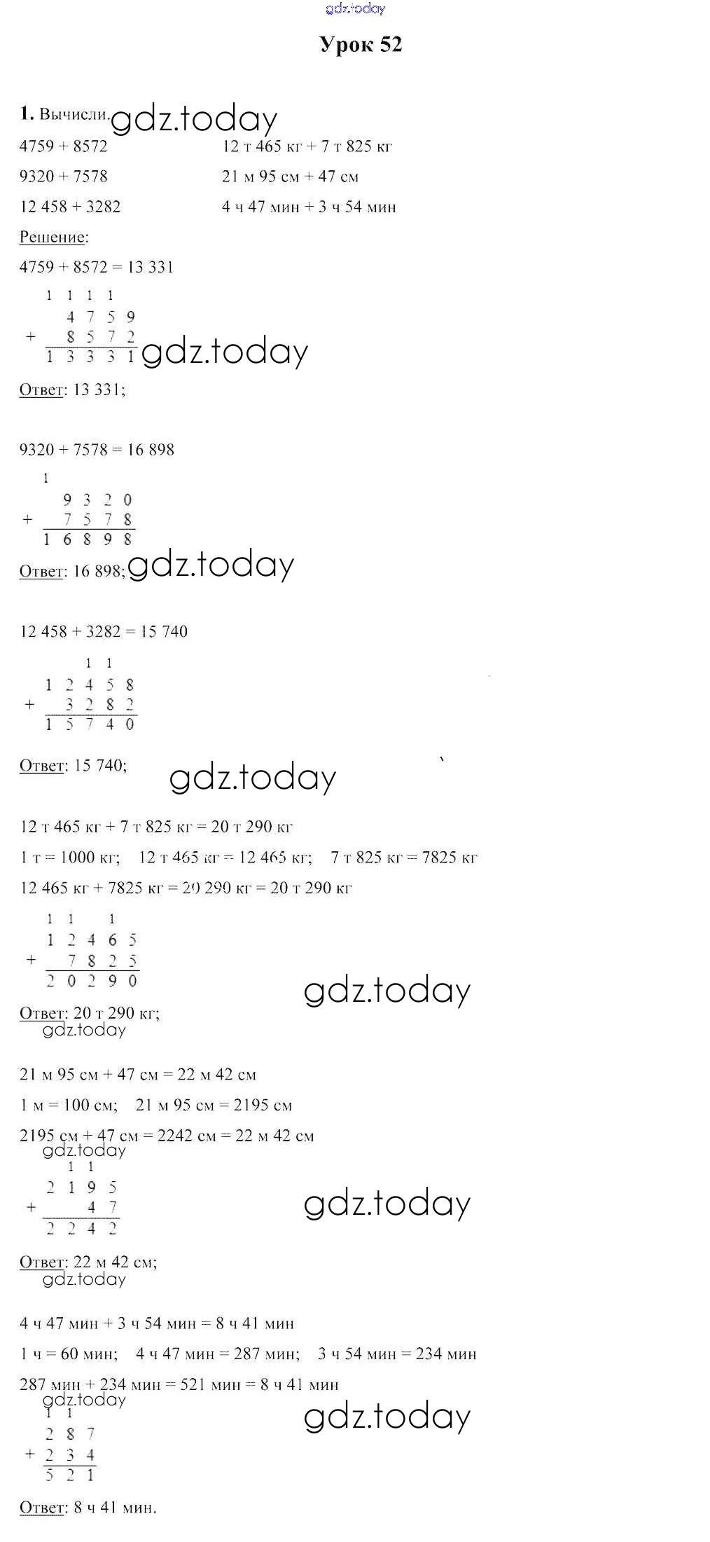 Ответы к Решение к уроку 52 1 Учебнику по Математике для 4 класса Чеботаревская, Николаева Начальная школа 2018