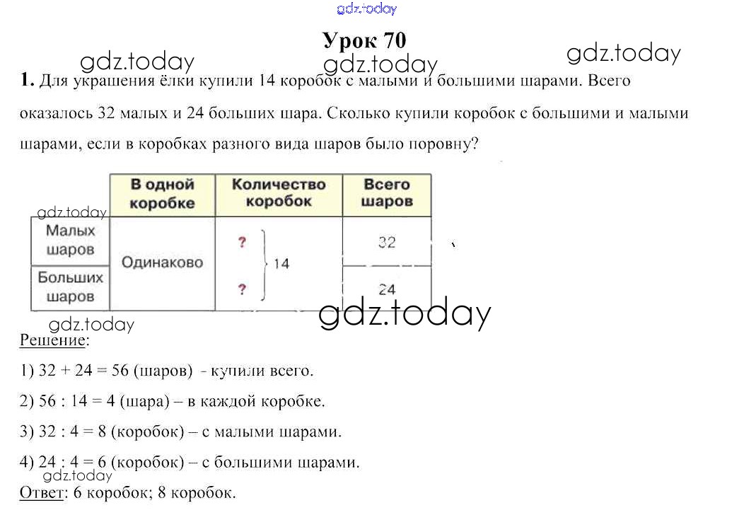 Ответы к Решение к уроку 70 1 Учебнику по Математике для 4 класса Чеботаревская, Николаева Начальная школа 2018