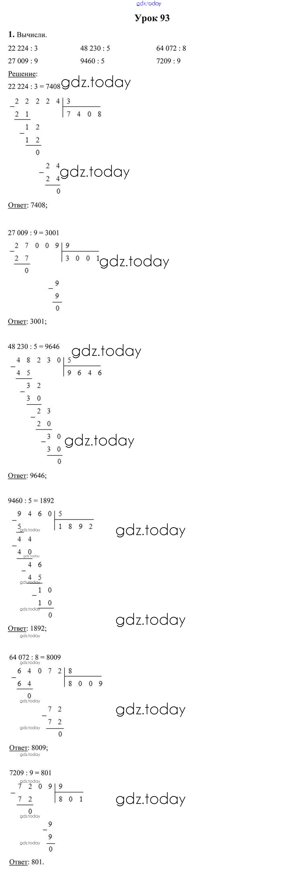 Ответы к Решение к уроку 93 1 Учебнику по Математике для 4 класса Чеботаревская, Николаева Начальная школа 2018