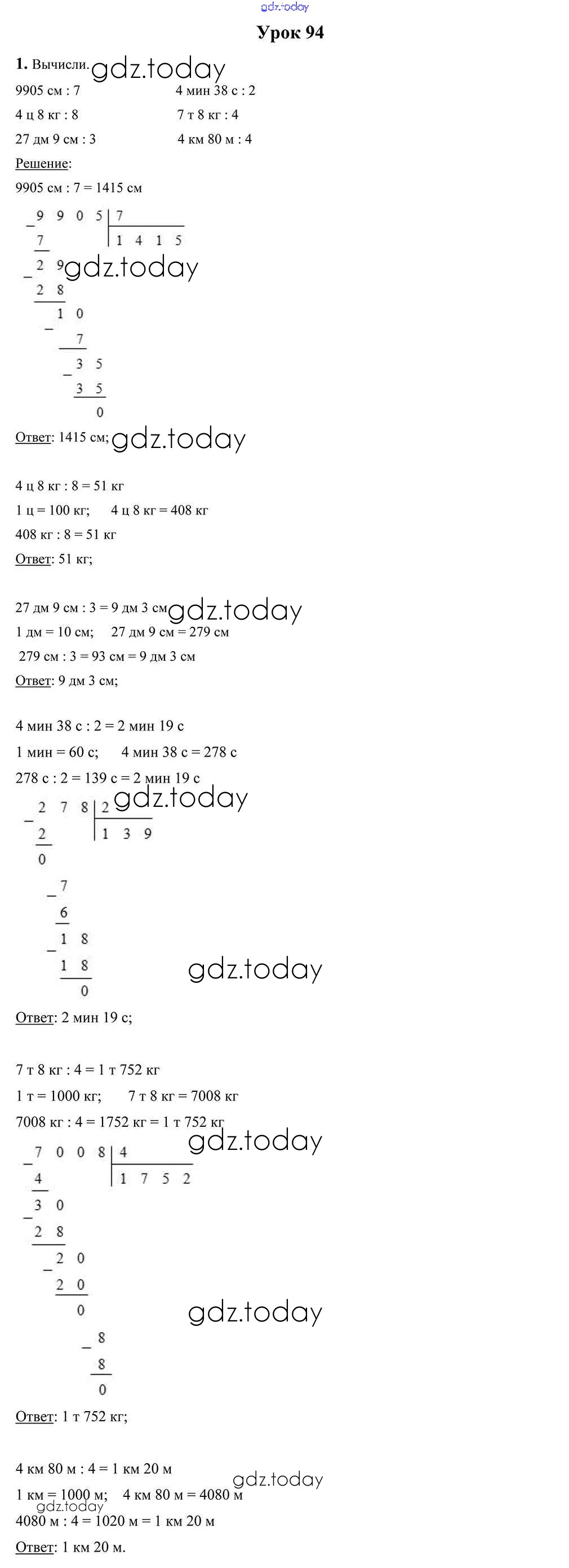 Ответы к Решение к уроку 94 1 Учебнику по Математике для 4 класса Чеботаревская, Николаева Начальная школа 2018