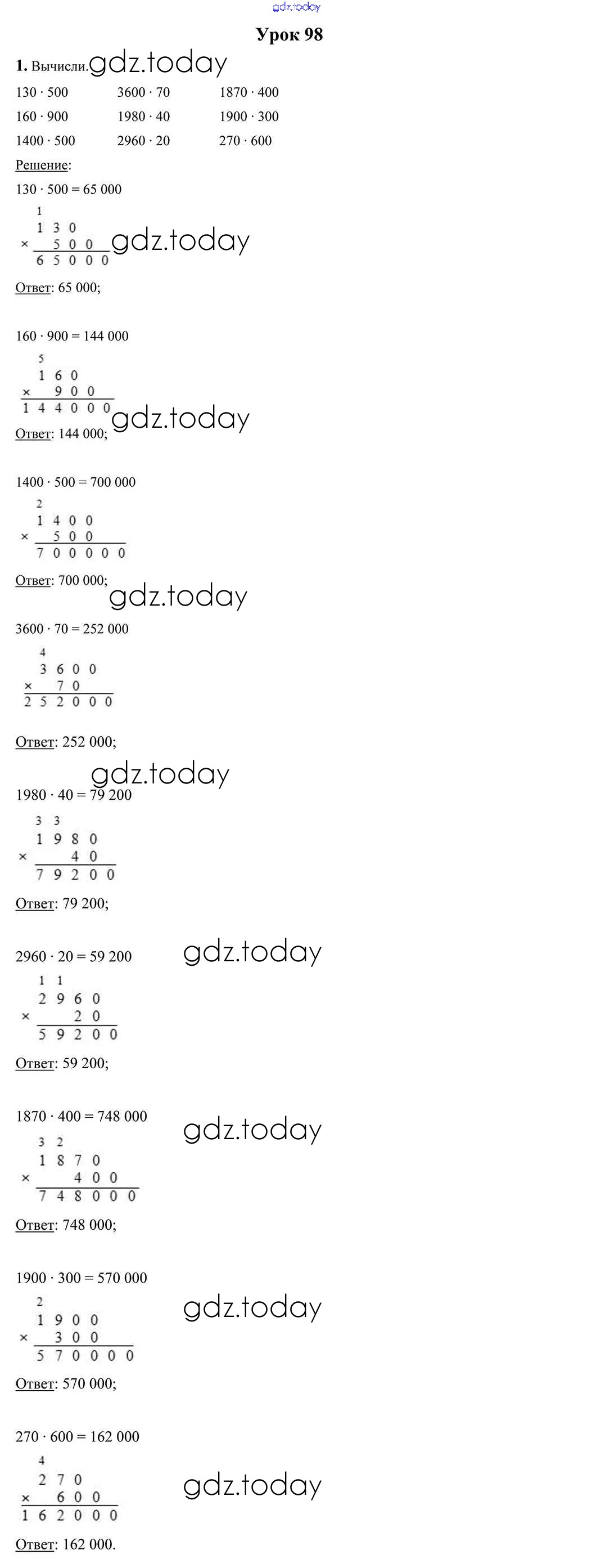 На страницах сайта gdz.today вы найдете учебный и вспомогательный материал, направленный на улучшения знаний школьной программы. ГДЗ - онлайн мир знаний Решение к уроку 98 1 Учебнику по Математике для 4 класса Чеботаревская, Николаева Начальная школа 2018