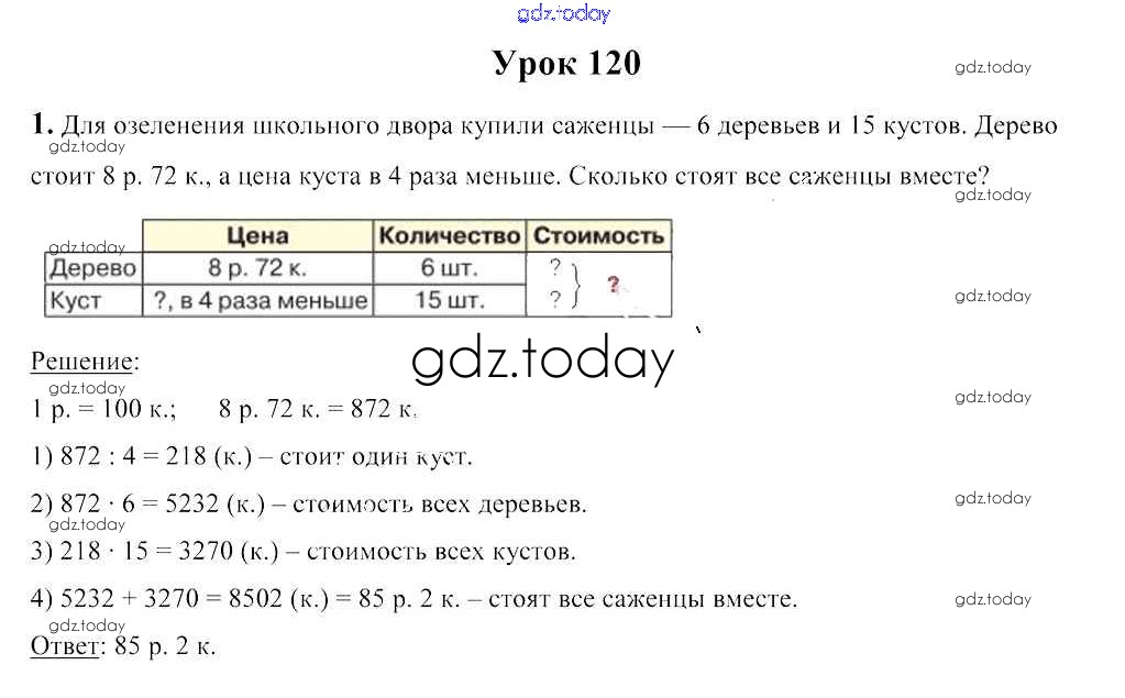 Ответы к Решение к уроку 120 1 Учебнику по Математике для 4 класса Чеботаревская, Николаева Начальная школа 2018