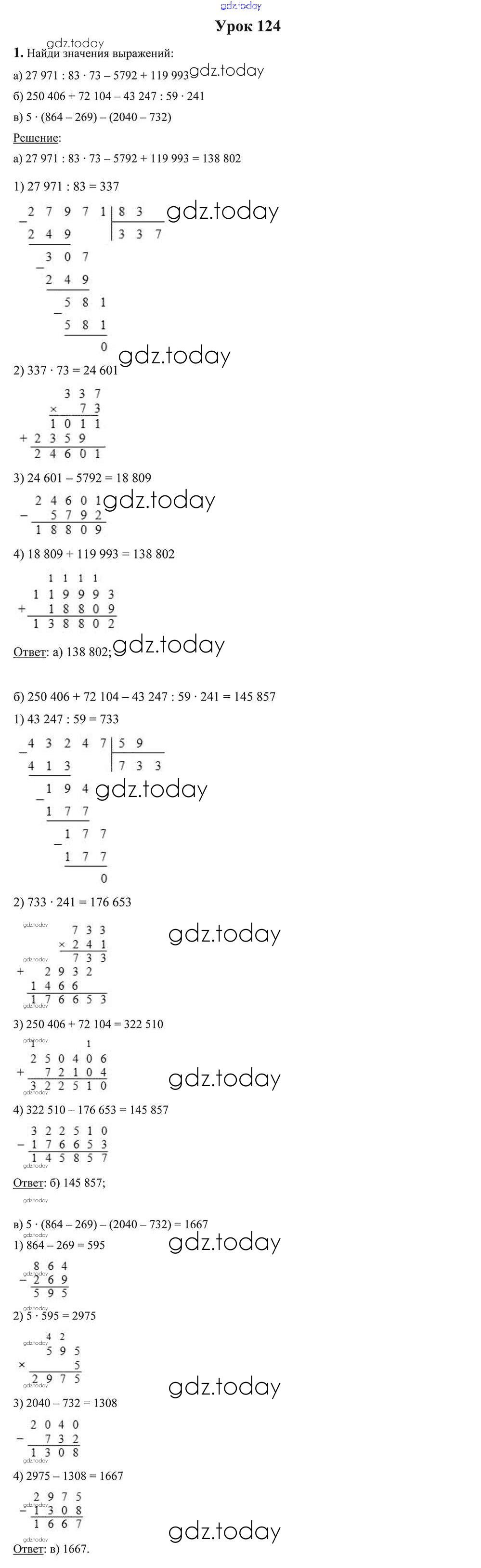 Ответы к Решение к уроку 124 1 Учебнику по Математике для 4 класса Чеботаревская, Николаева Начальная школа 2018