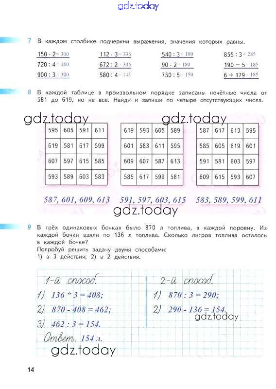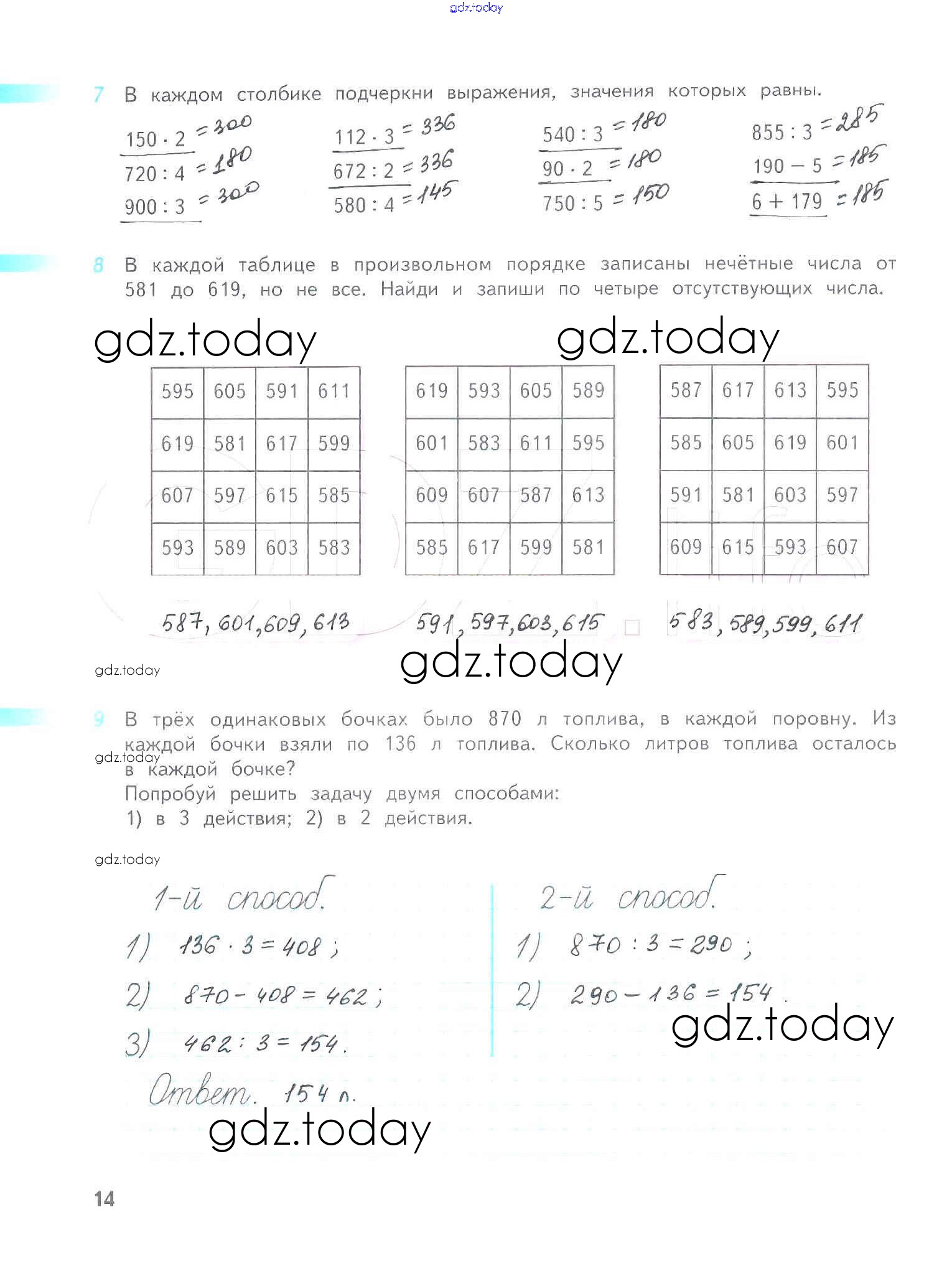 На страницах сайта gdz.today вы найдете учебный и вспомогательный материал, направленный на улучшения знаний школьной программы. ГДЗ - онлайн мир знаний Решение к части 1. Страницы 14 Рабочей тетради по Математике для 4 класса Дорофеев, Миракова Просвещение Перспектива 2017