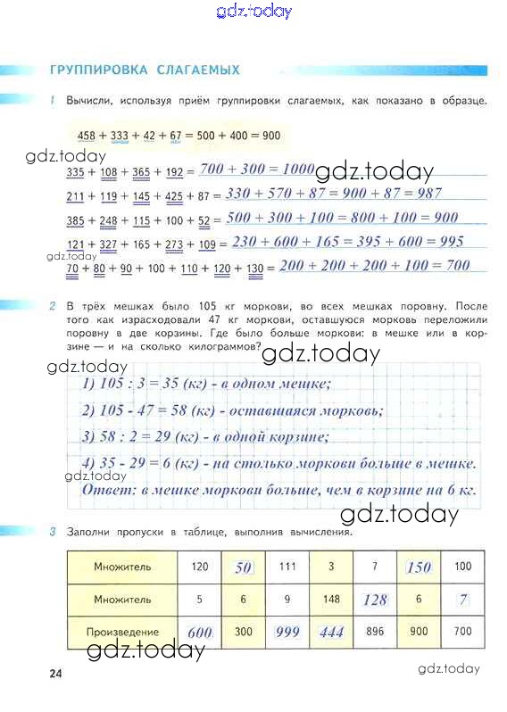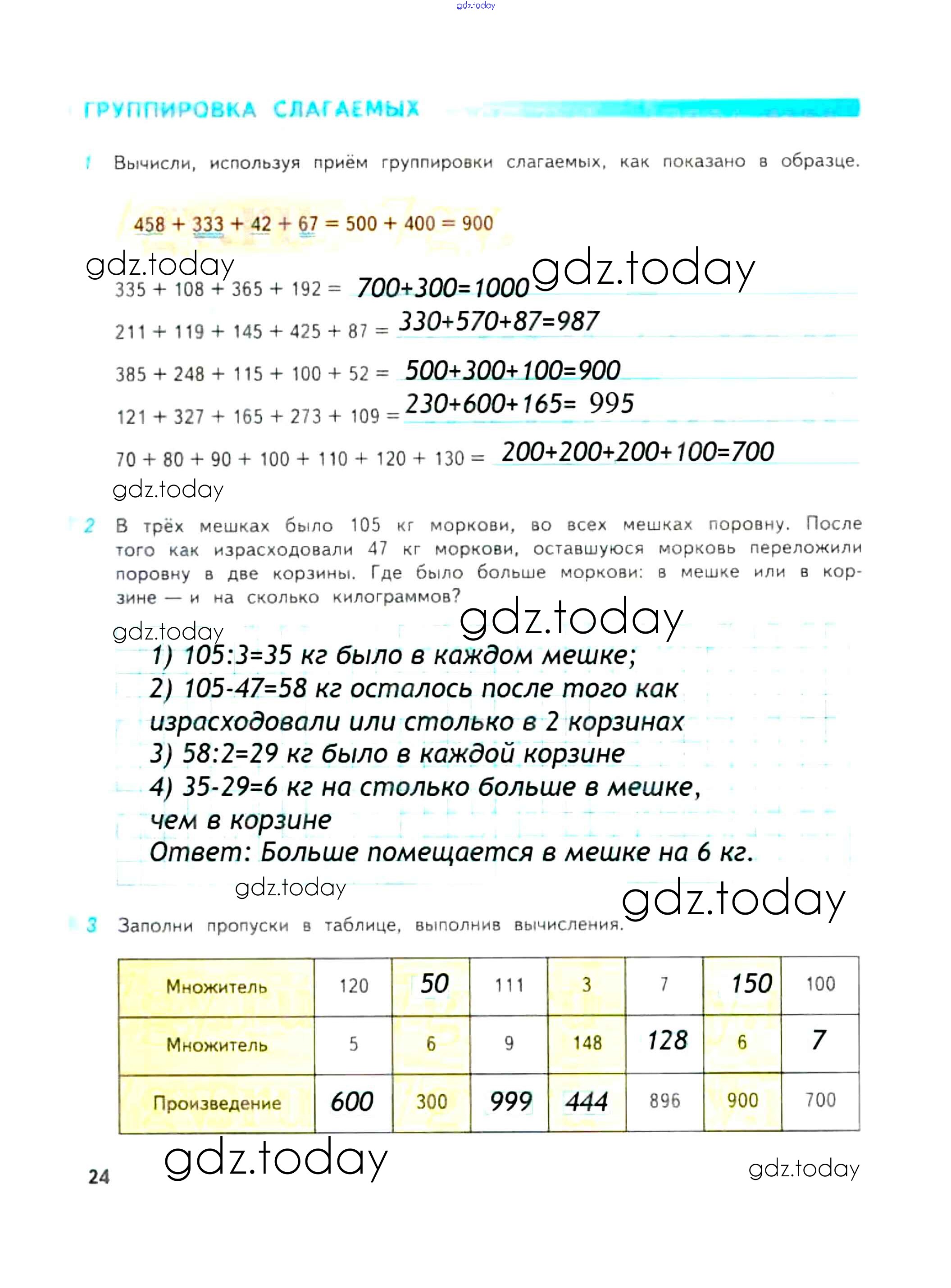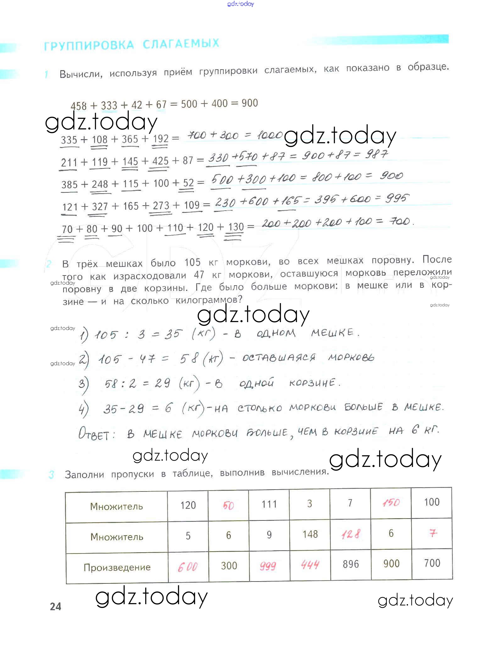 На страницах сайта gdz.today вы найдете учебный и вспомогательный материал, направленный на улучшения знаний школьной программы. ГДЗ - онлайн мир знаний Решение к части 1. Страницы 24 Рабочей тетради по Математике для 4 класса Дорофеев, Миракова Просвещение Перспектива 2017