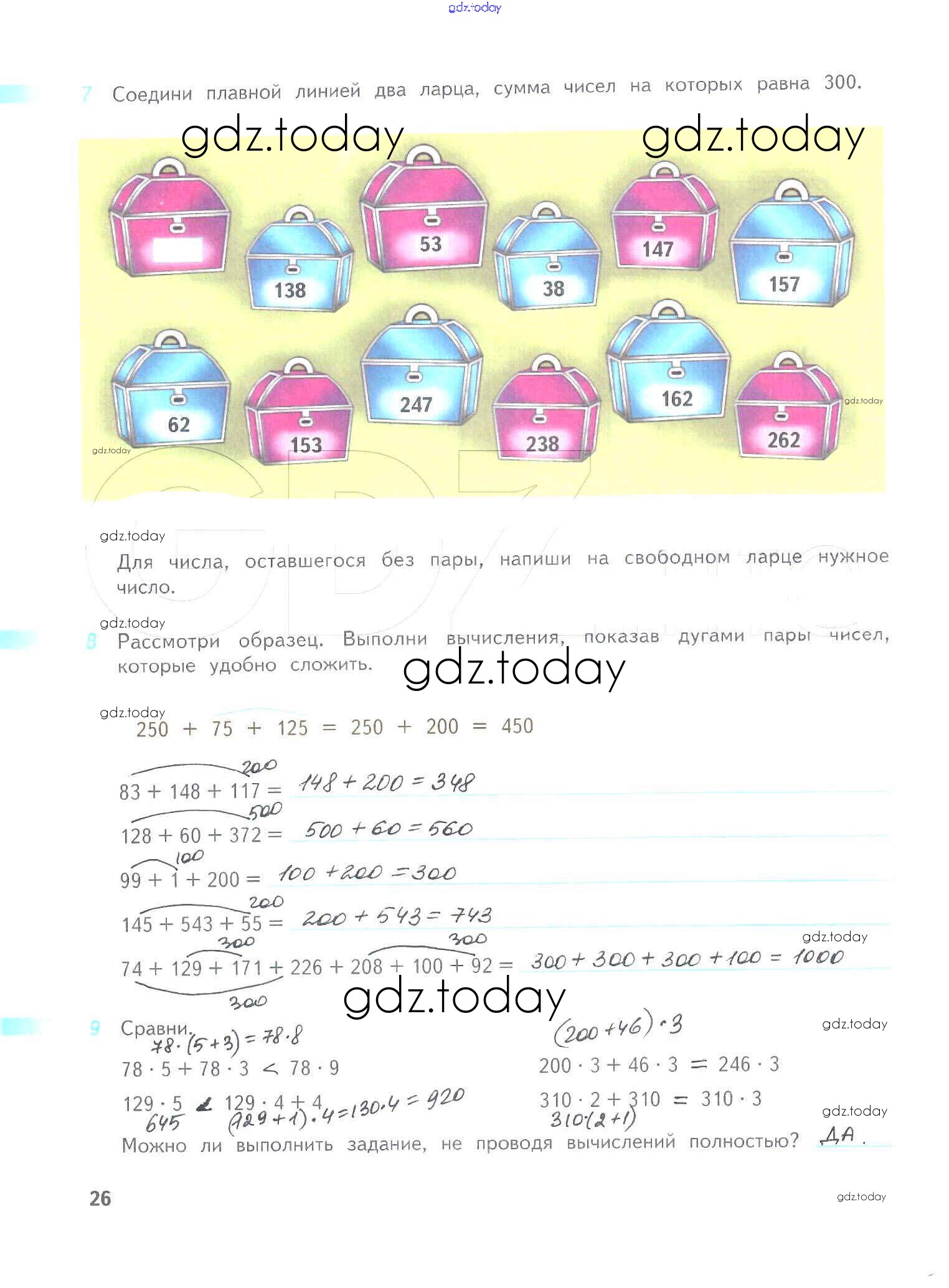 На страницах сайта gdz.today вы найдете учебный и вспомогательный материал, направленный на улучшения знаний школьной программы. ГДЗ - онлайн мир знаний Решение к части 1. Страницы 26 Рабочей тетради по Математике для 4 класса Дорофеев, Миракова Просвещение Перспектива 2017