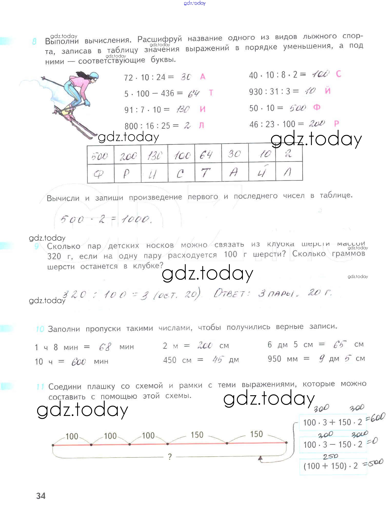 На страницах сайта gdz.today вы найдете учебный и вспомогательный материал, направленный на улучшения знаний школьной программы. ГДЗ - онлайн мир знаний Решение к части 1. Страницы 34 Рабочей тетради по Математике для 4 класса Дорофеев, Миракова Просвещение Перспектива 2017