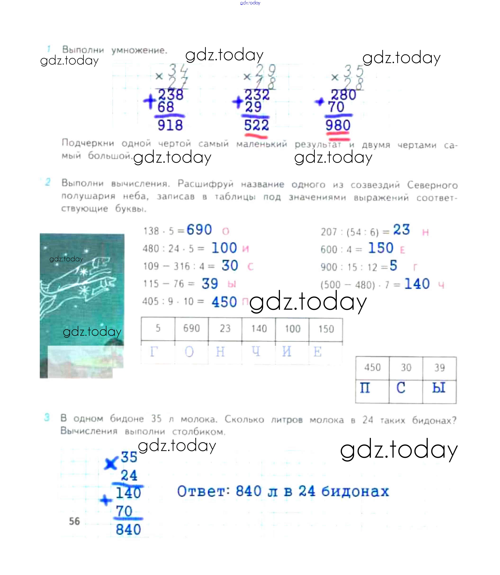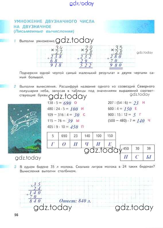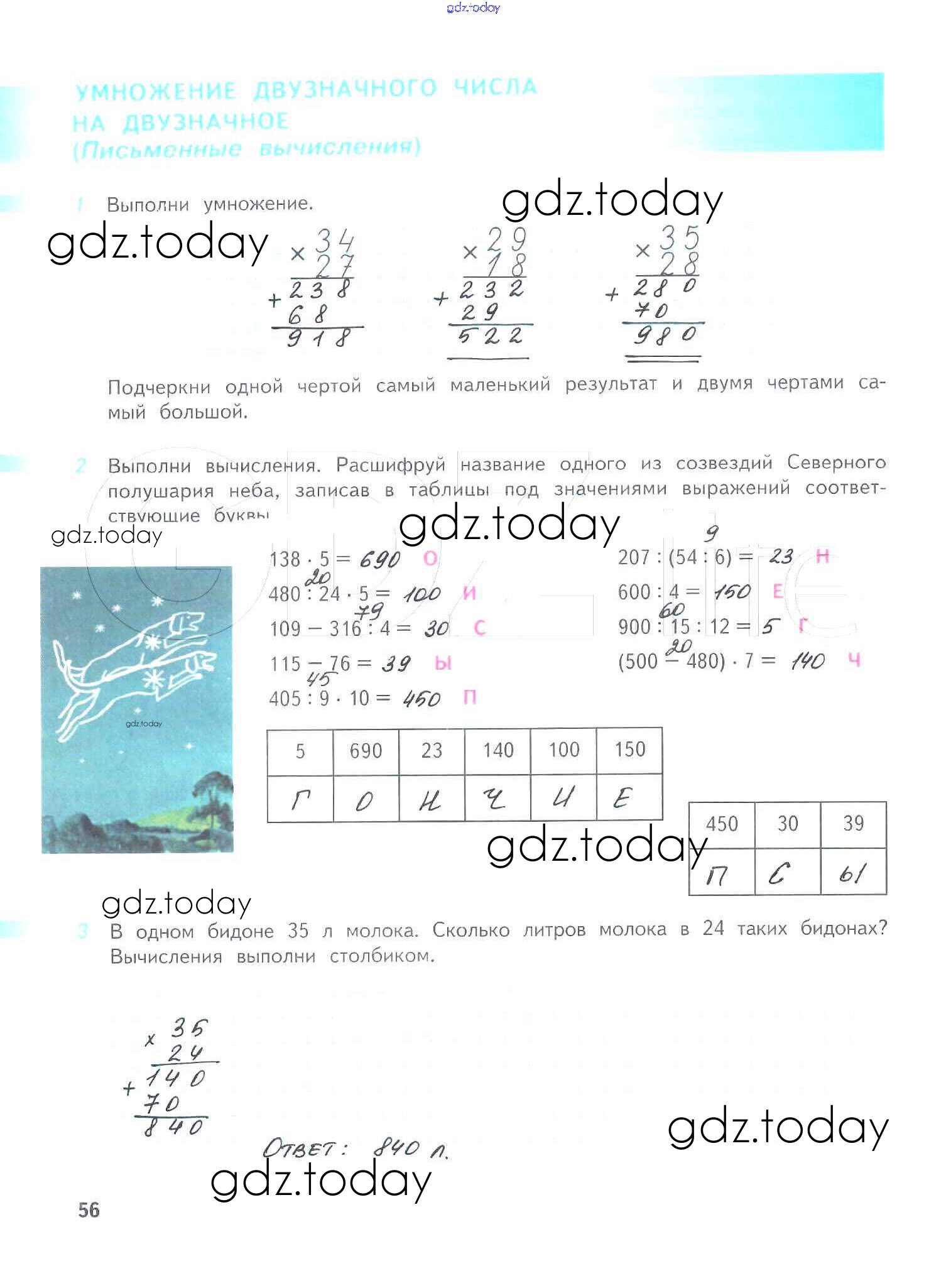На страницах сайта gdz.today вы найдете учебный и вспомогательный материал, направленный на улучшения знаний школьной программы. ГДЗ - онлайн мир знаний Решение к части 1. Страницы 56 Рабочей тетради по Математике для 4 класса Дорофеев, Миракова Просвещение Перспектива 2017