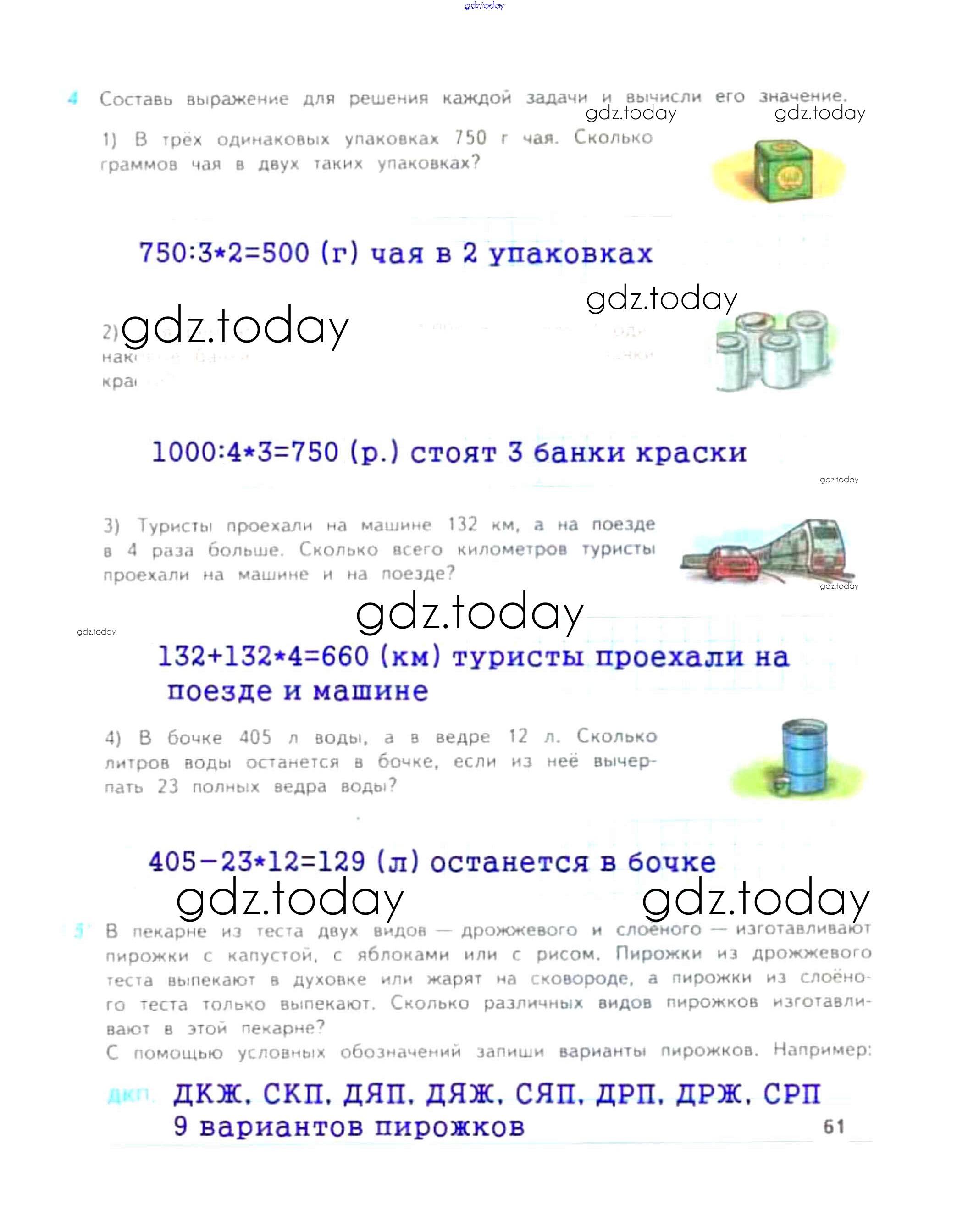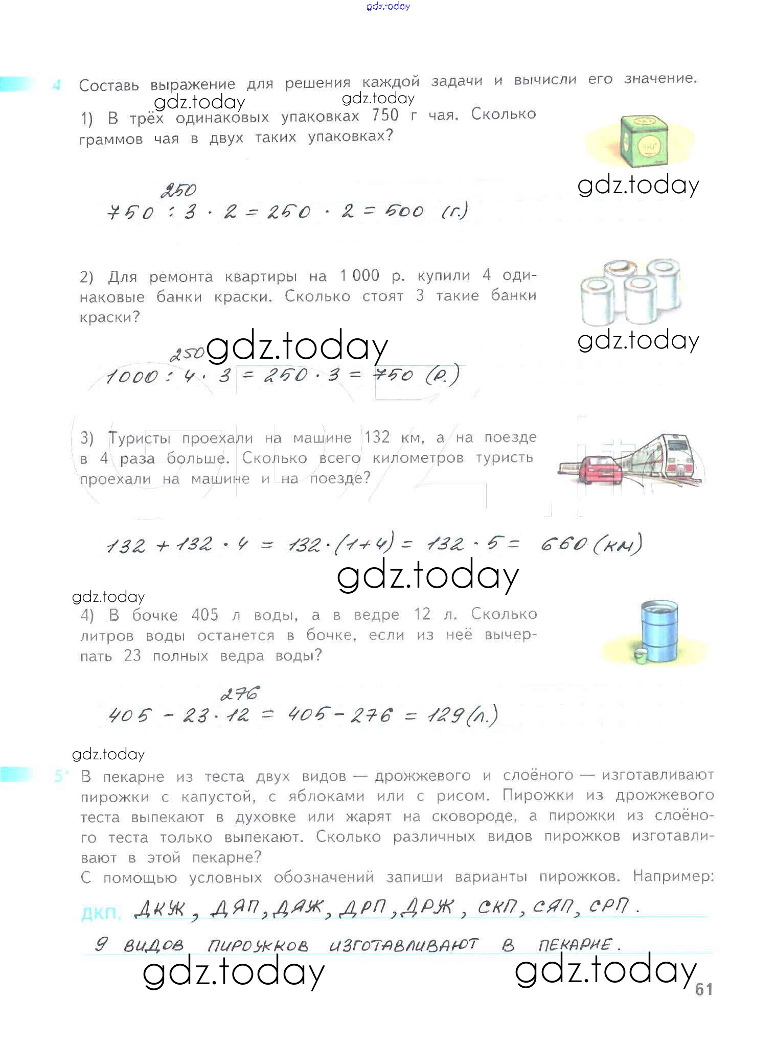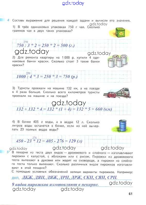 Ответы к Решение к части 1. Страницы 61 Рабочей тетради по Математике для 4 класса Дорофеев, Миракова Просвещение Перспектива 2017