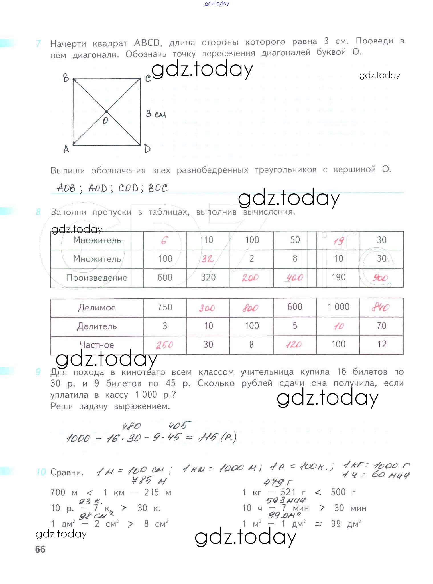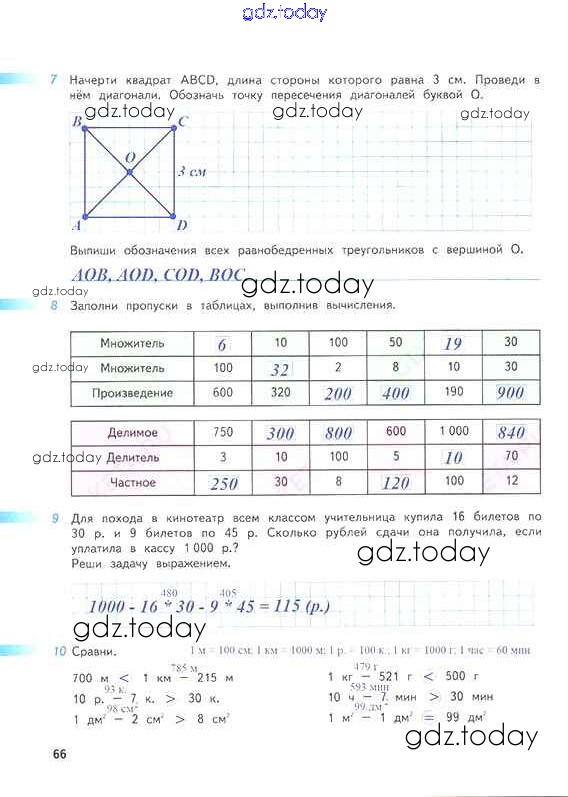 На страницах сайта gdz.today вы найдете учебный и вспомогательный материал, направленный на улучшения знаний школьной программы. ГДЗ - онлайн мир знаний Решение к части 1. Страницы 66 Рабочей тетради по Математике для 4 класса Дорофеев, Миракова Просвещение Перспектива 2017