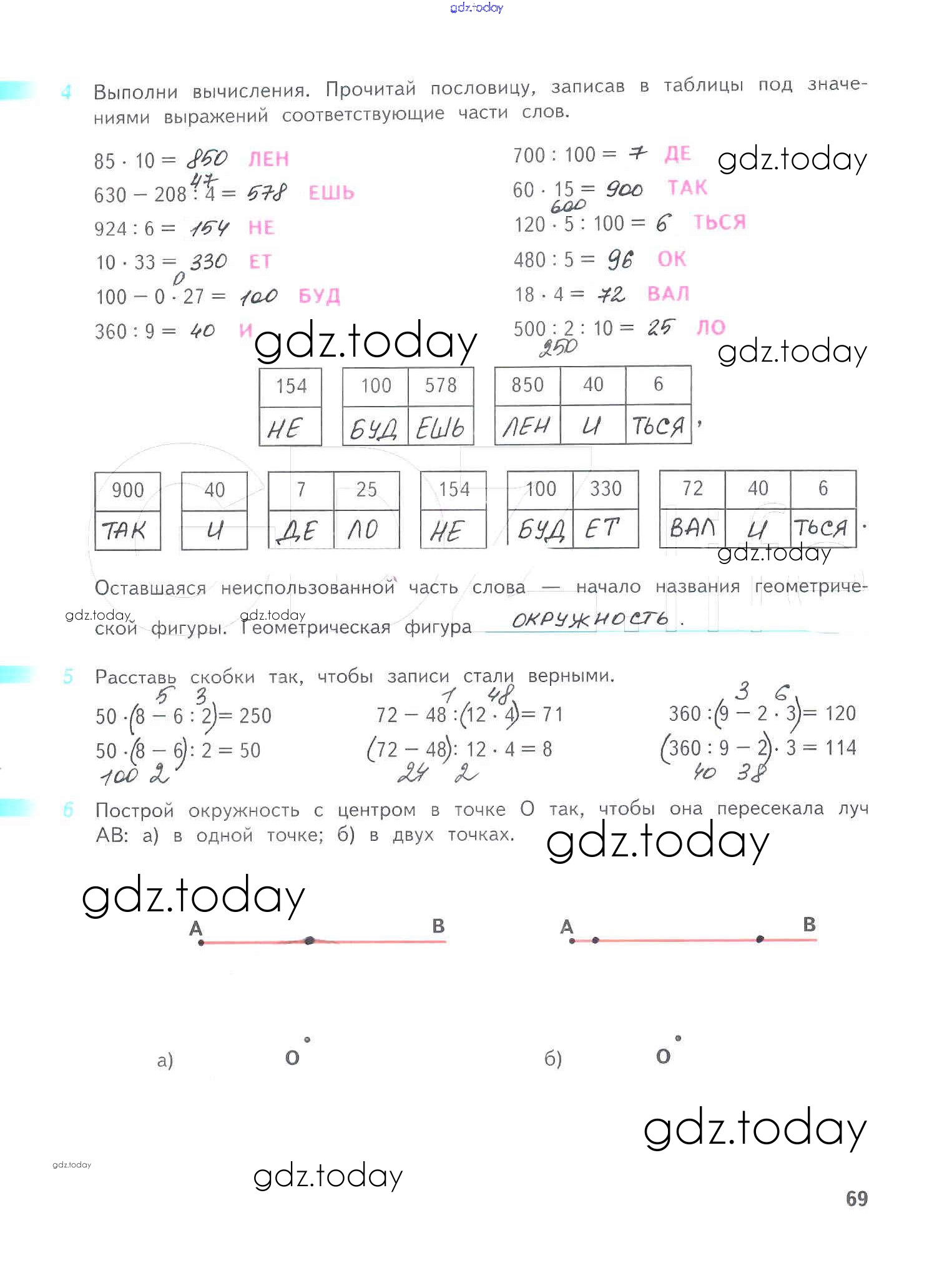 На страницах сайта gdz.today вы найдете учебный и вспомогательный материал, направленный на улучшения знаний школьной программы. ГДЗ - онлайн мир знаний Решение к части 1. Страницы 69 Рабочей тетради по Математике для 4 класса Дорофеев, Миракова Просвещение Перспектива 2017