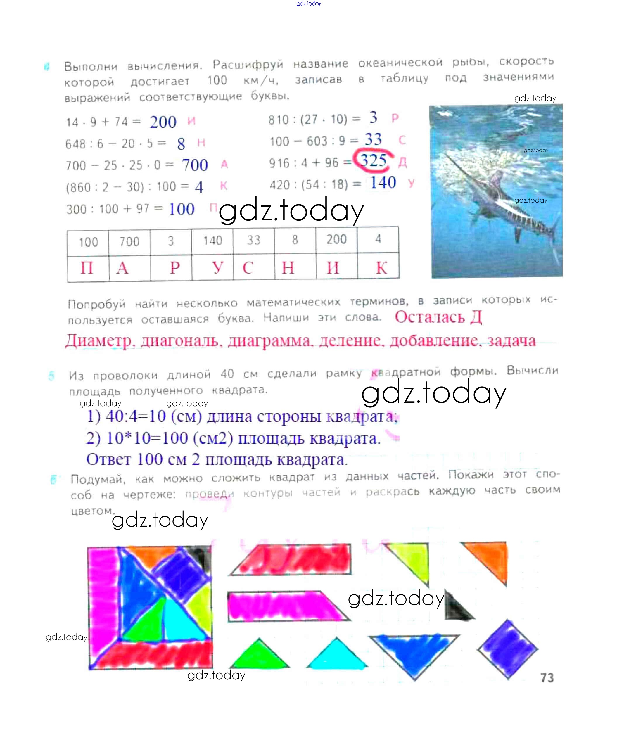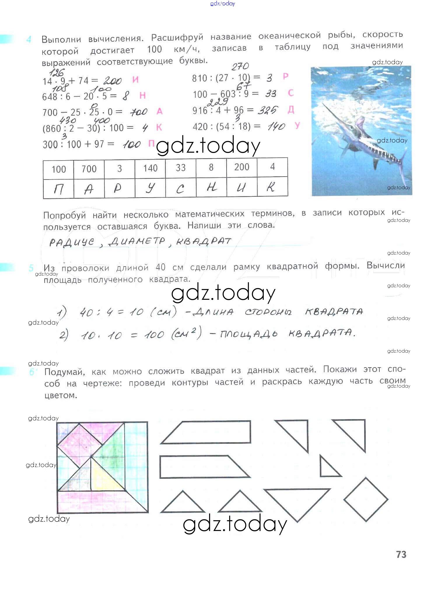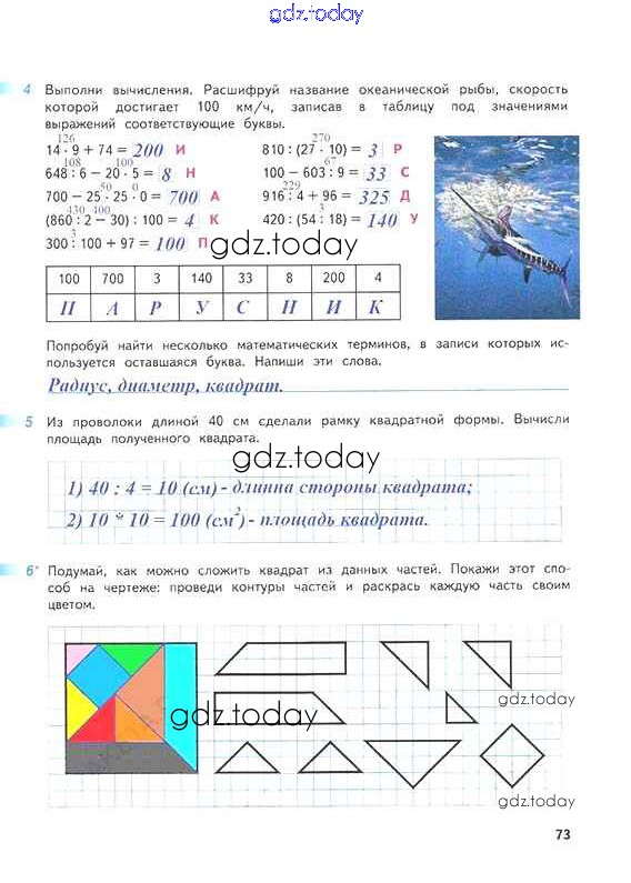 На страницах сайта gdz.today вы найдете учебный и вспомогательный материал, направленный на улучшения знаний школьной программы. ГДЗ - онлайн мир знаний Решение к части 1. Страницы 73 Рабочей тетради по Математике для 4 класса Дорофеев, Миракова Просвещение Перспектива 2017