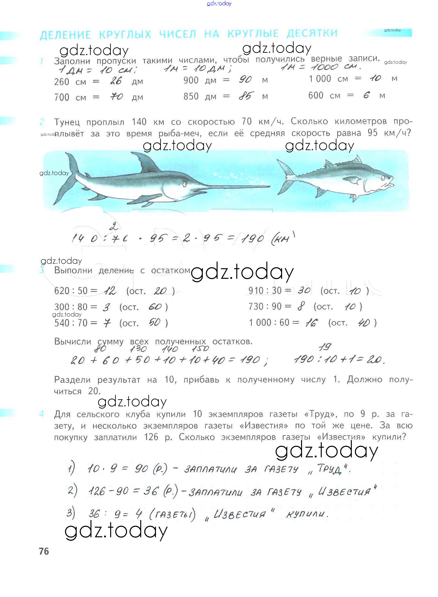 На страницах сайта gdz.today вы найдете учебный и вспомогательный материал, направленный на улучшения знаний школьной программы. ГДЗ - онлайн мир знаний Решение к части 1. Страницы 76 Рабочей тетради по Математике для 4 класса Дорофеев, Миракова Просвещение Перспектива 2017
