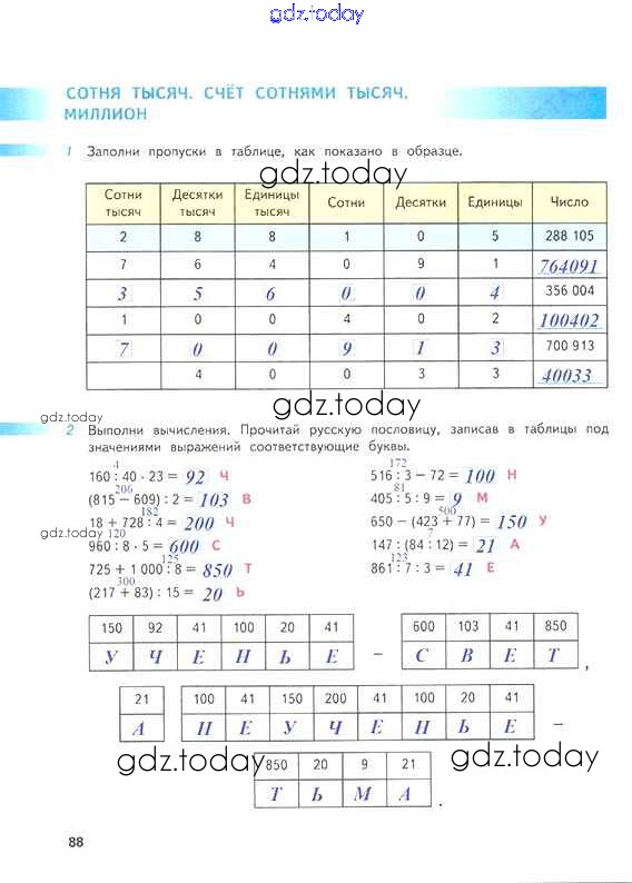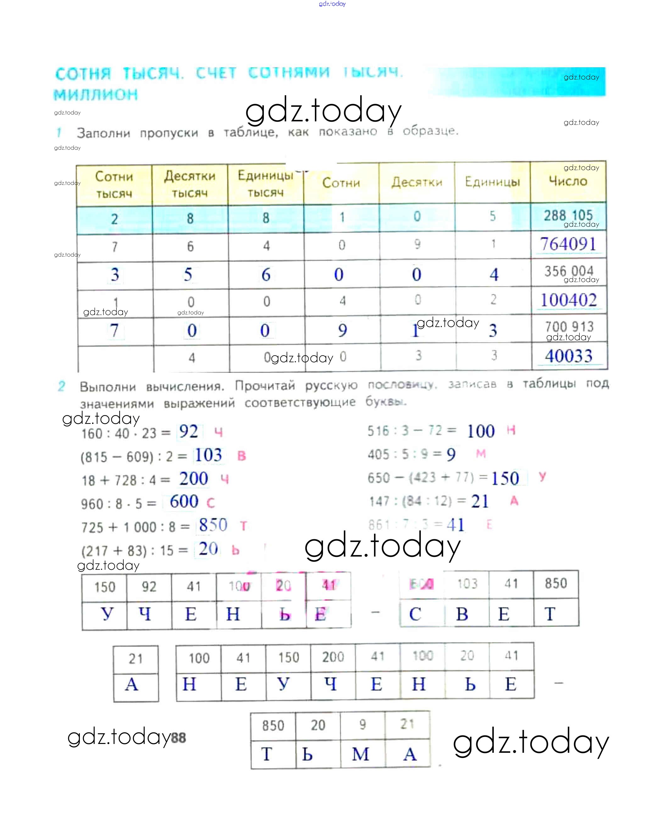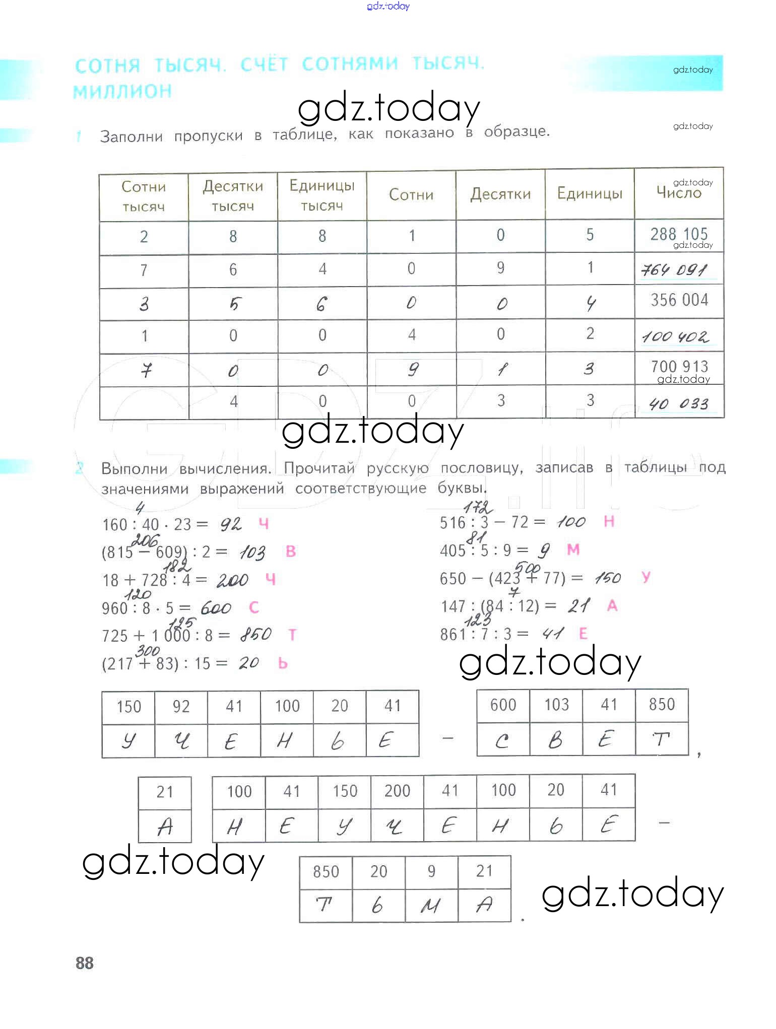 На страницах сайта gdz.today вы найдете учебный и вспомогательный материал, направленный на улучшения знаний школьной программы. ГДЗ - онлайн мир знаний Решение к части 1. Страницы 88 Рабочей тетради по Математике для 4 класса Дорофеев, Миракова Просвещение Перспектива 2017