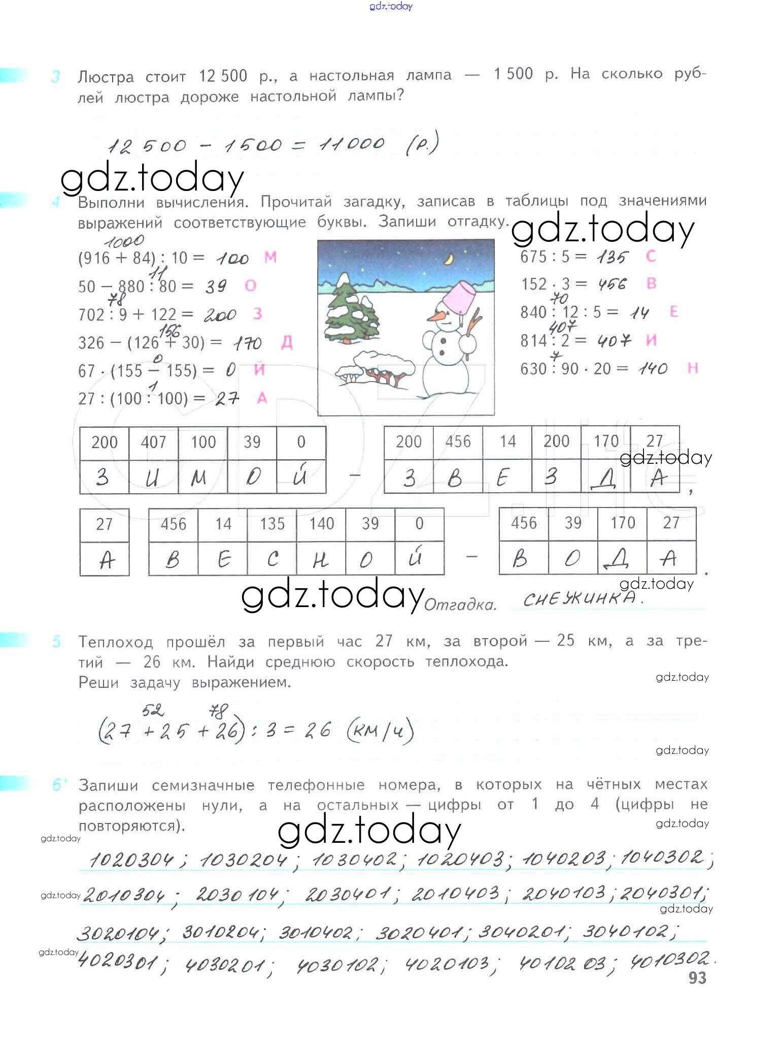 На страницах сайта gdz.today вы найдете учебный и вспомогательный материал, направленный на улучшения знаний школьной программы. ГДЗ - онлайн мир знаний Решение к части 1. Страницы 93 Рабочей тетради по Математике для 4 класса Дорофеев, Миракова Просвещение Перспектива 2017