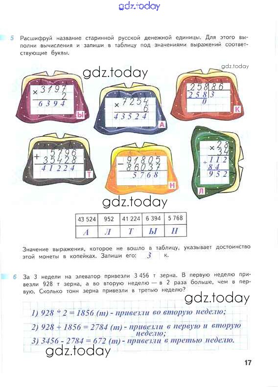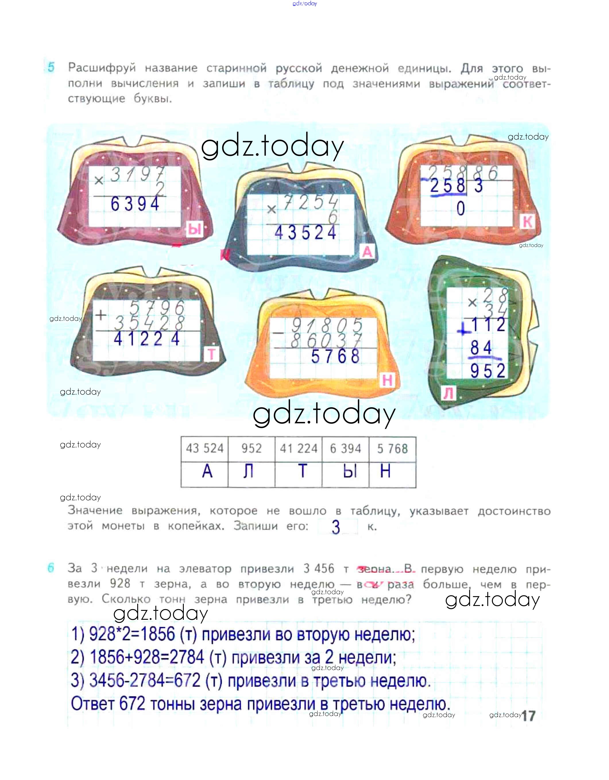 Ответы к Решение к части 2. Страницы 17 Рабочей тетради по Математике для 4 класса Дорофеев, Миракова Просвещение Перспектива 2017