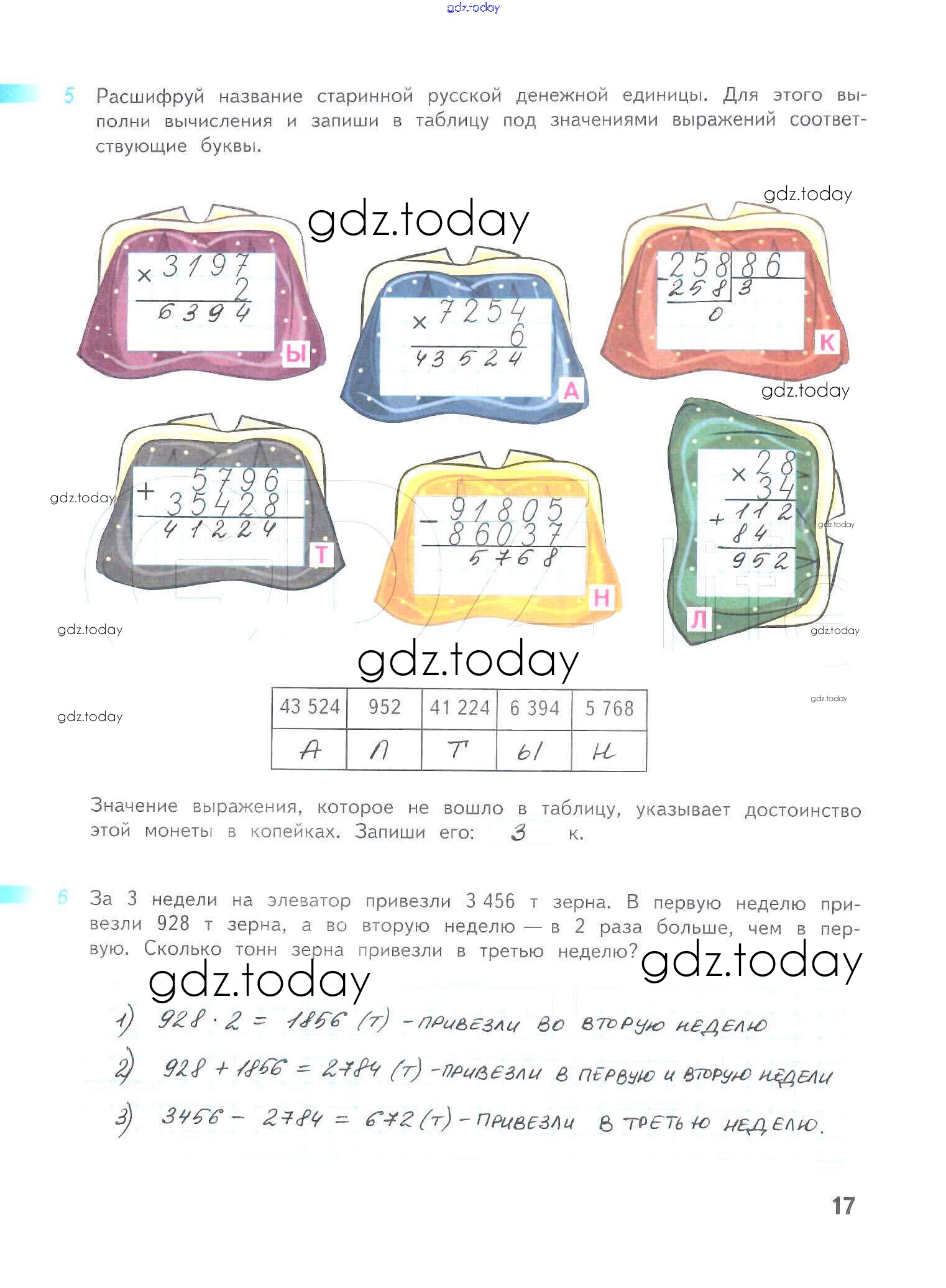 На страницах сайта gdz.today вы найдете учебный и вспомогательный материал, направленный на улучшения знаний школьной программы. ГДЗ - онлайн мир знаний Решение к части 2. Страницы 17 Рабочей тетради по Математике для 4 класса Дорофеев, Миракова Просвещение Перспектива 2017