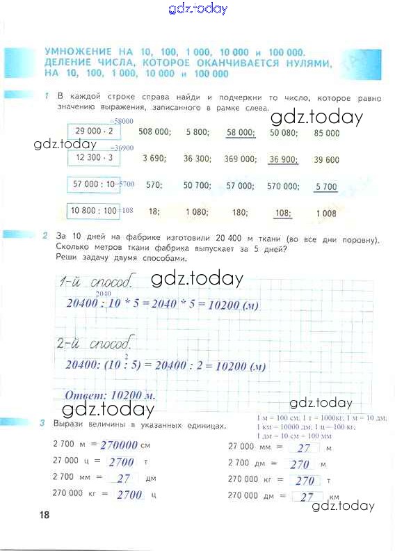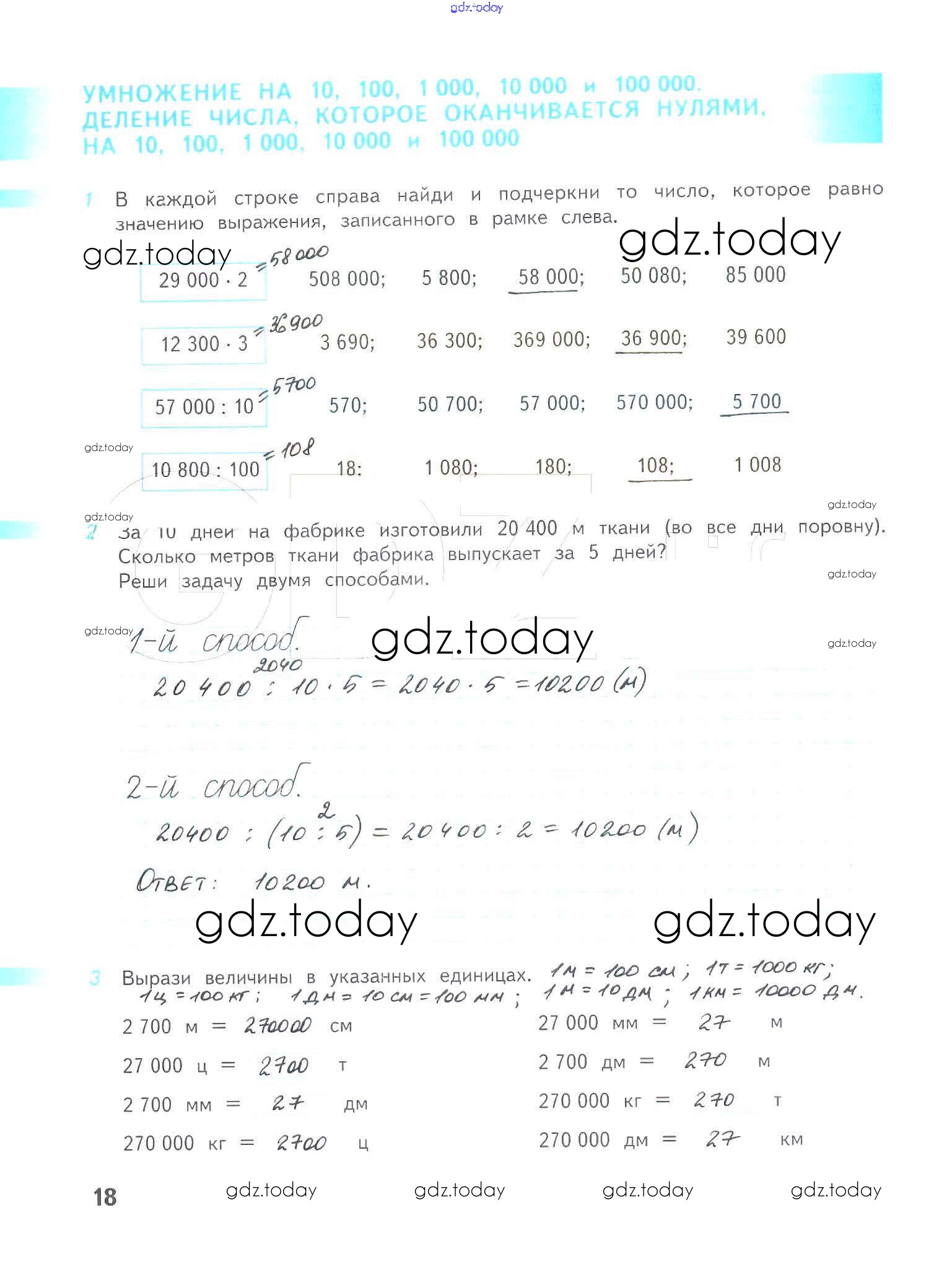 На страницах сайта gdz.today вы найдете учебный и вспомогательный материал, направленный на улучшения знаний школьной программы. ГДЗ - онлайн мир знаний Решение к части 2. Страницы 18 Рабочей тетради по Математике для 4 класса Дорофеев, Миракова Просвещение Перспектива 2017