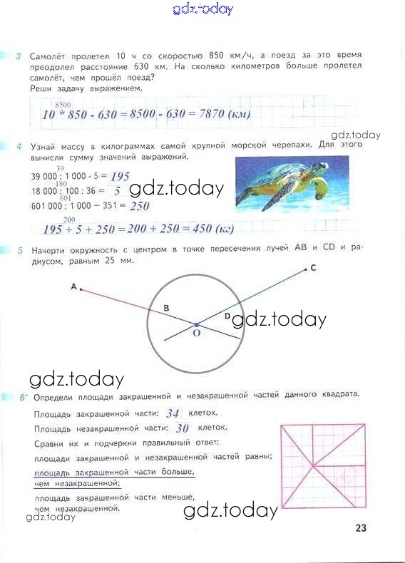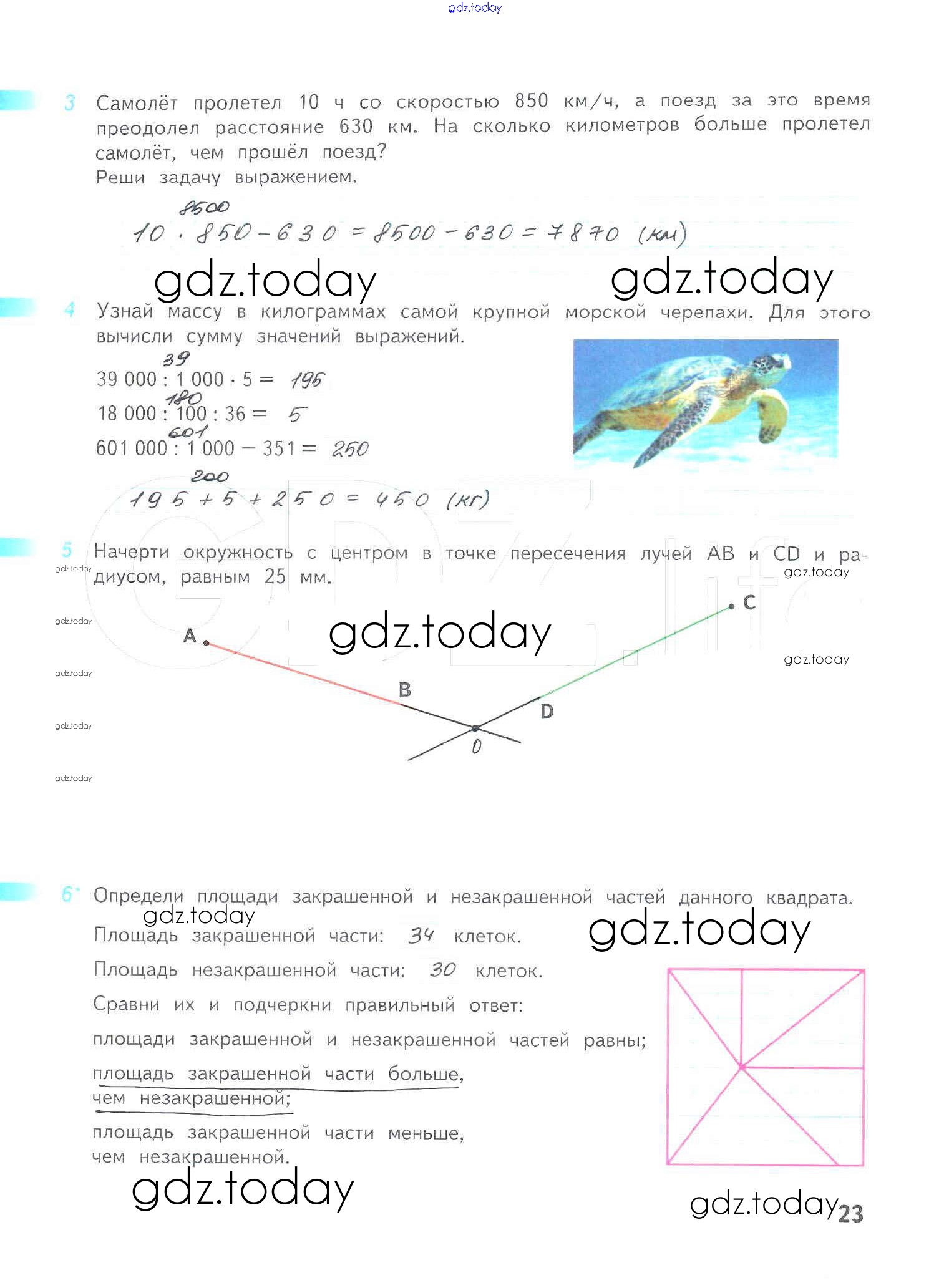 Ответы к Решение к части 2. Страницы 23 Рабочей тетради по Математике для 4 класса Дорофеев, Миракова Просвещение Перспектива 2017