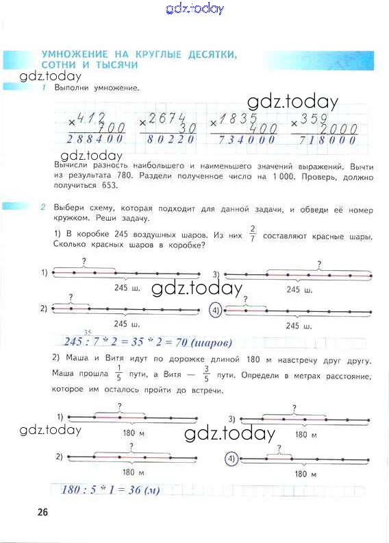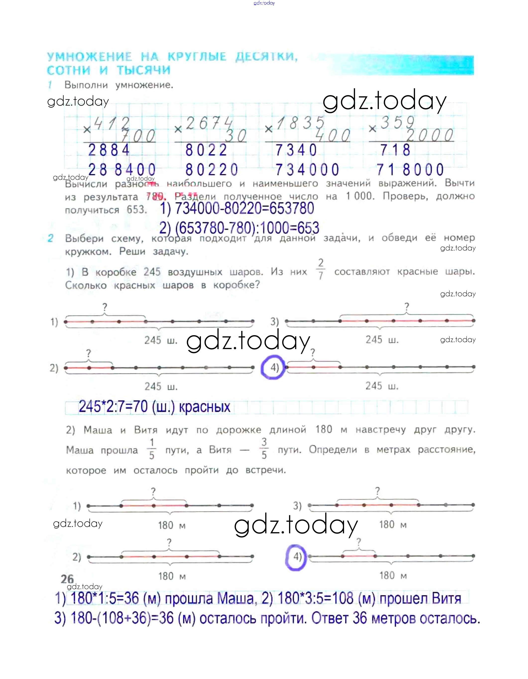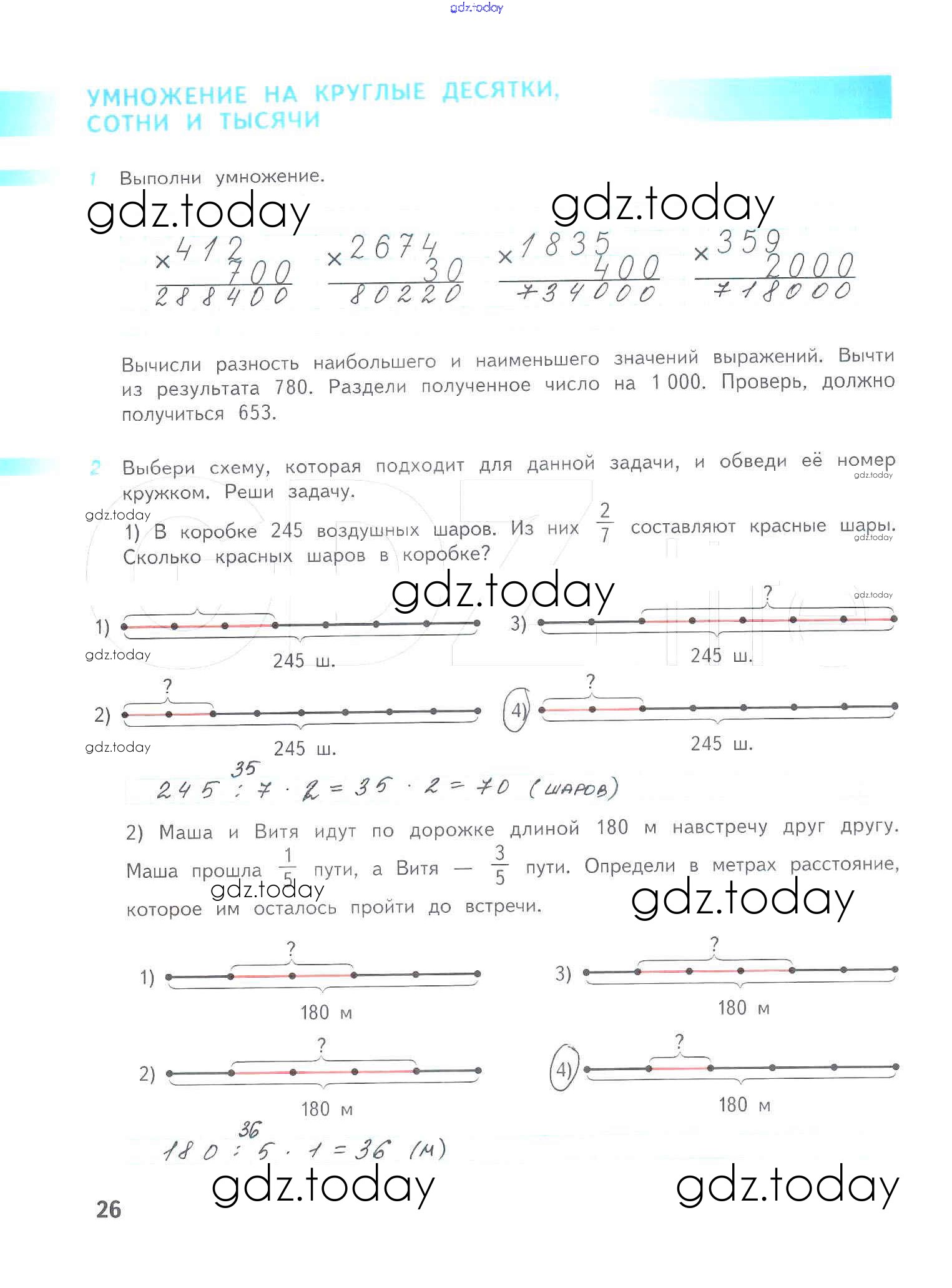 На страницах сайта gdz.today вы найдете учебный и вспомогательный материал, направленный на улучшения знаний школьной программы. ГДЗ - онлайн мир знаний Решение к части 2. Страницы 26 Рабочей тетради по Математике для 4 класса Дорофеев, Миракова Просвещение Перспектива 2017