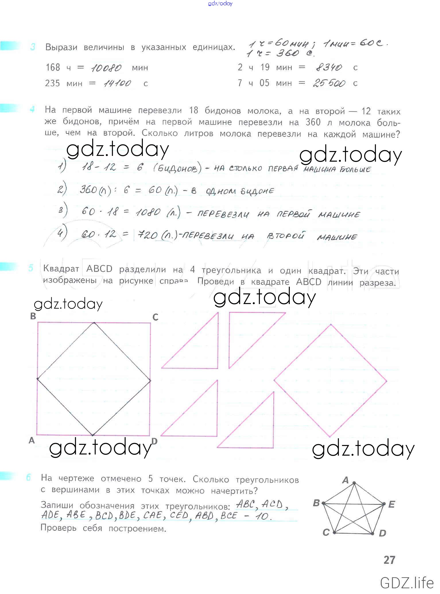 Ответы к Решение к части 2. Страницы 27 Рабочей тетради по Математике для 4 класса Дорофеев, Миракова Просвещение Перспектива 2017