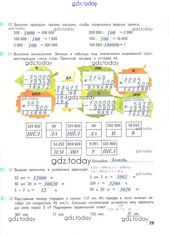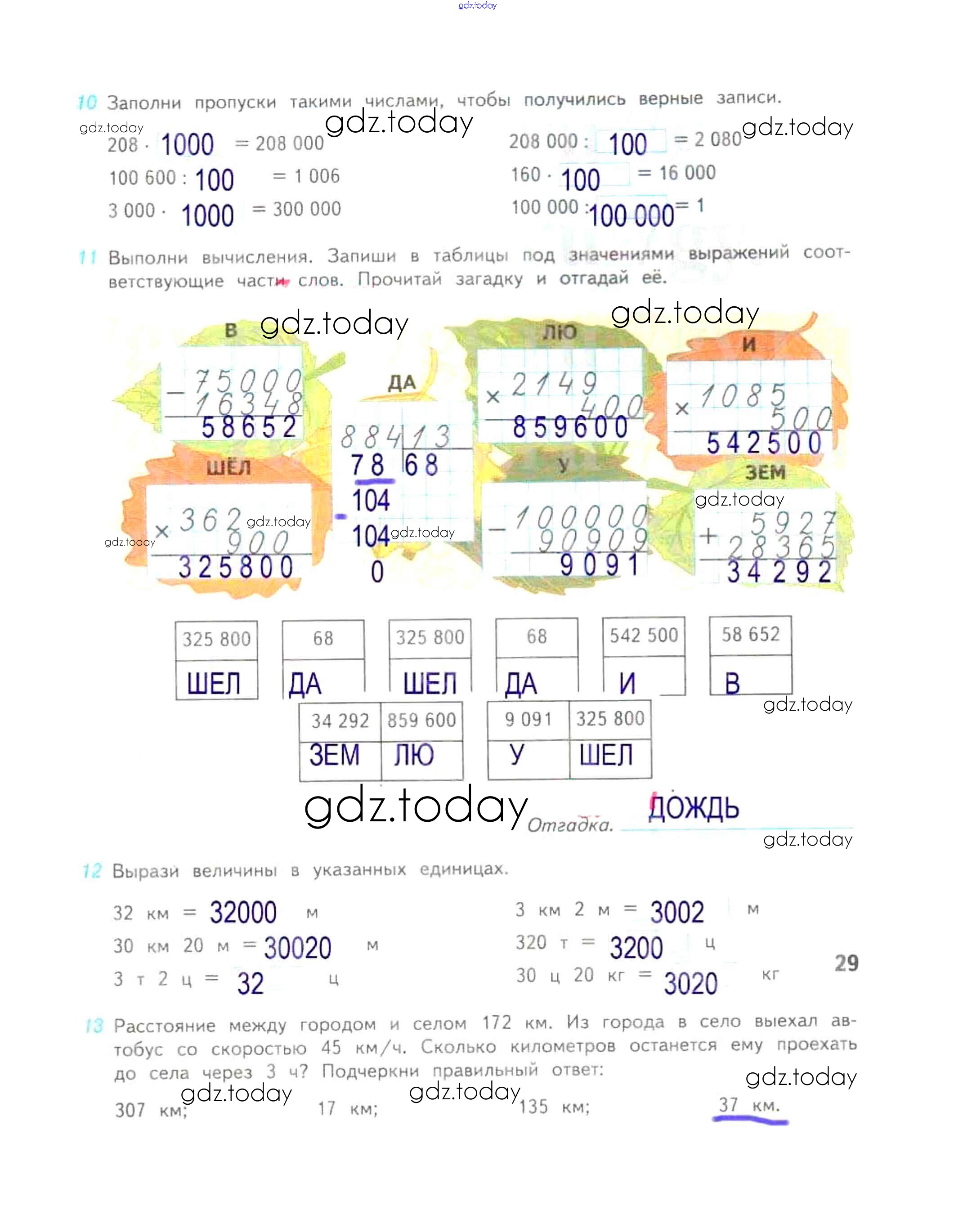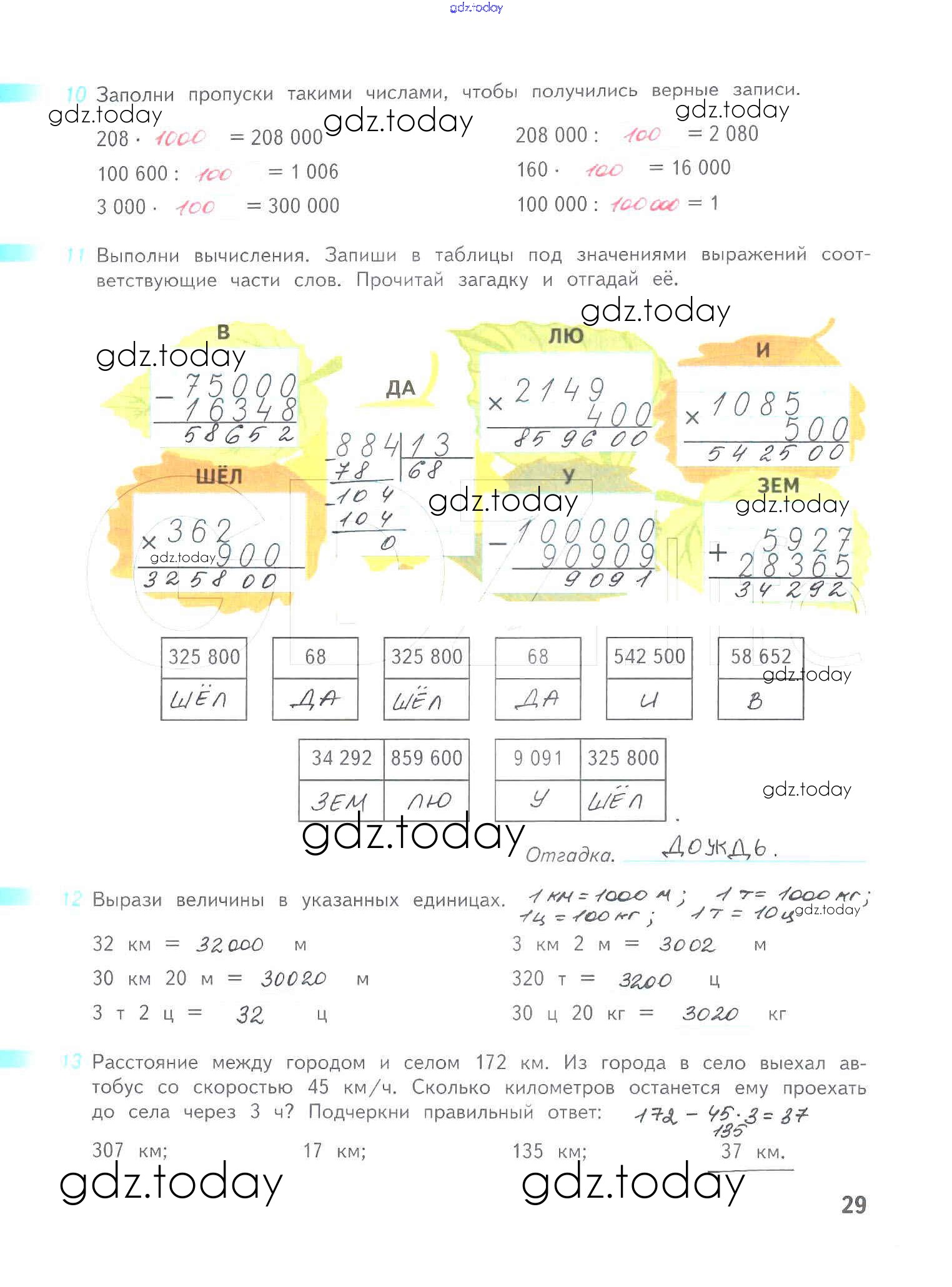 Ответы к Решение к части 2. Страницы 29 Рабочей тетради по Математике для 4 класса Дорофеев, Миракова Просвещение Перспектива 2017