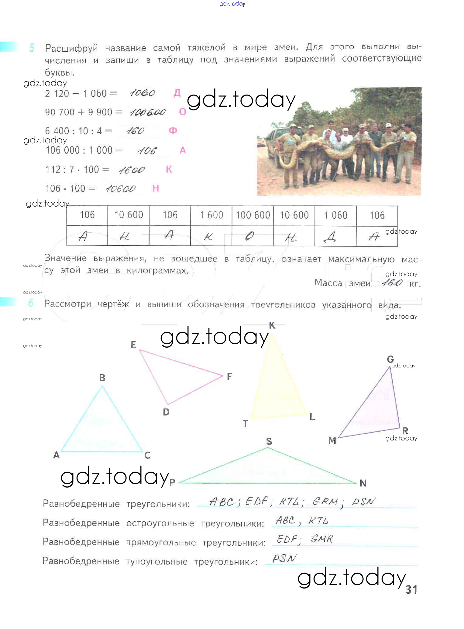 Ответы к Решение к части 2. Страницы 31 Рабочей тетради по Математике для 4 класса Дорофеев, Миракова Просвещение Перспектива 2017