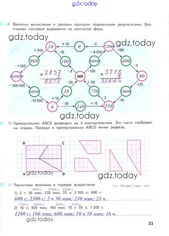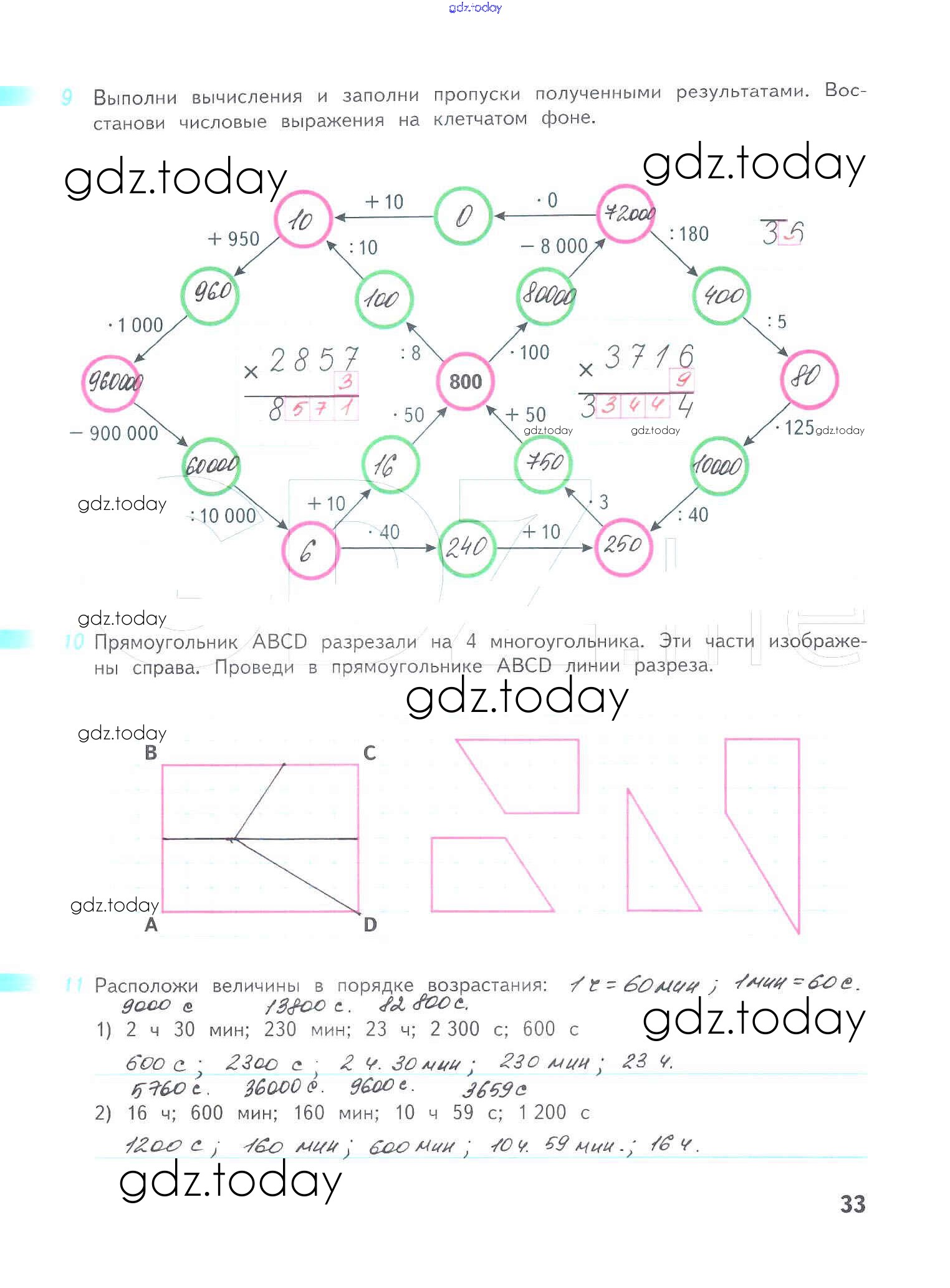 На страницах сайта gdz.today вы найдете учебный и вспомогательный материал, направленный на улучшения знаний школьной программы. ГДЗ - онлайн мир знаний Решение к части 2. Страницы 33 Рабочей тетради по Математике для 4 класса Дорофеев, Миракова Просвещение Перспектива 2017
