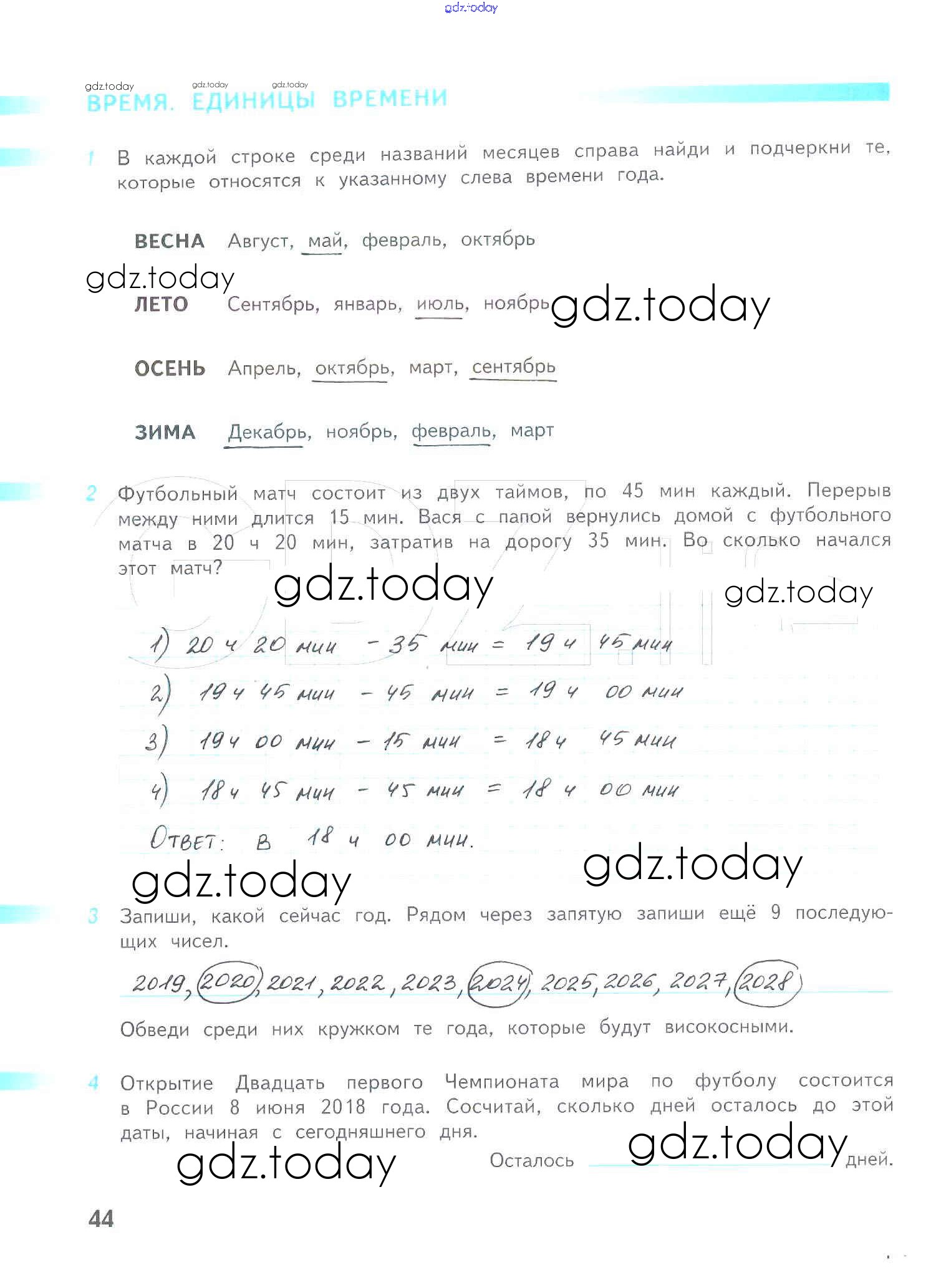 На страницах сайта gdz.today вы найдете учебный и вспомогательный материал, направленный на улучшения знаний школьной программы. ГДЗ - онлайн мир знаний Решение к части 2. Страницы 44 Рабочей тетради по Математике для 4 класса Дорофеев, Миракова Просвещение Перспектива 2017