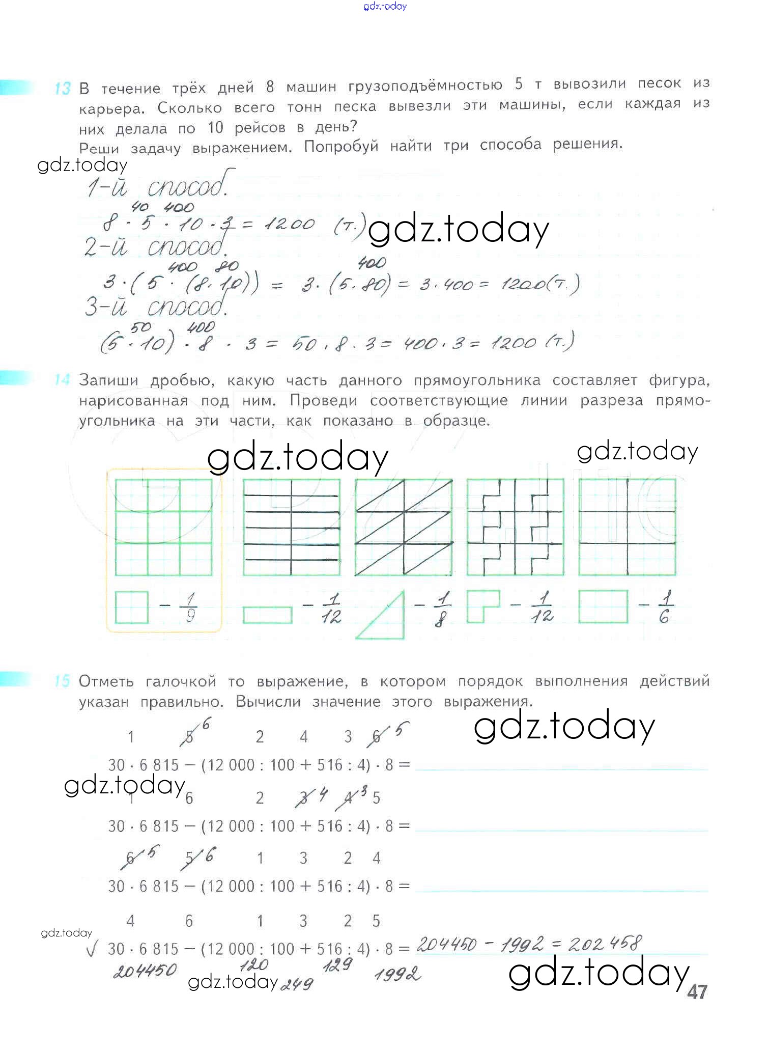 На страницах сайта gdz.today вы найдете учебный и вспомогательный материал, направленный на улучшения знаний школьной программы. ГДЗ - онлайн мир знаний Решение к части 2. Страницы 47 Рабочей тетради по Математике для 4 класса Дорофеев, Миракова Просвещение Перспектива 2017