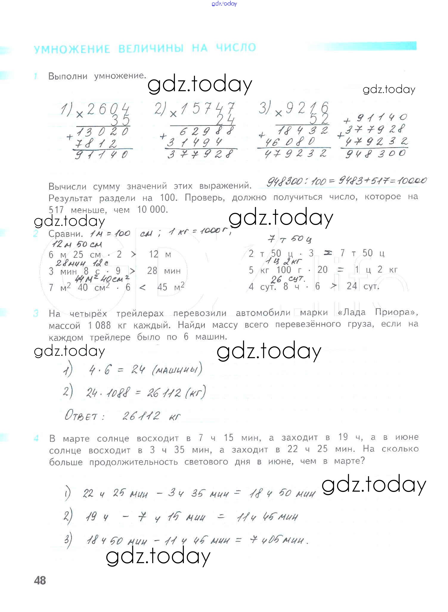 На страницах сайта gdz.today вы найдете учебный и вспомогательный материал, направленный на улучшения знаний школьной программы. ГДЗ - онлайн мир знаний Решение к части 2. Страницы 48 Рабочей тетради по Математике для 4 класса Дорофеев, Миракова Просвещение Перспектива 2017