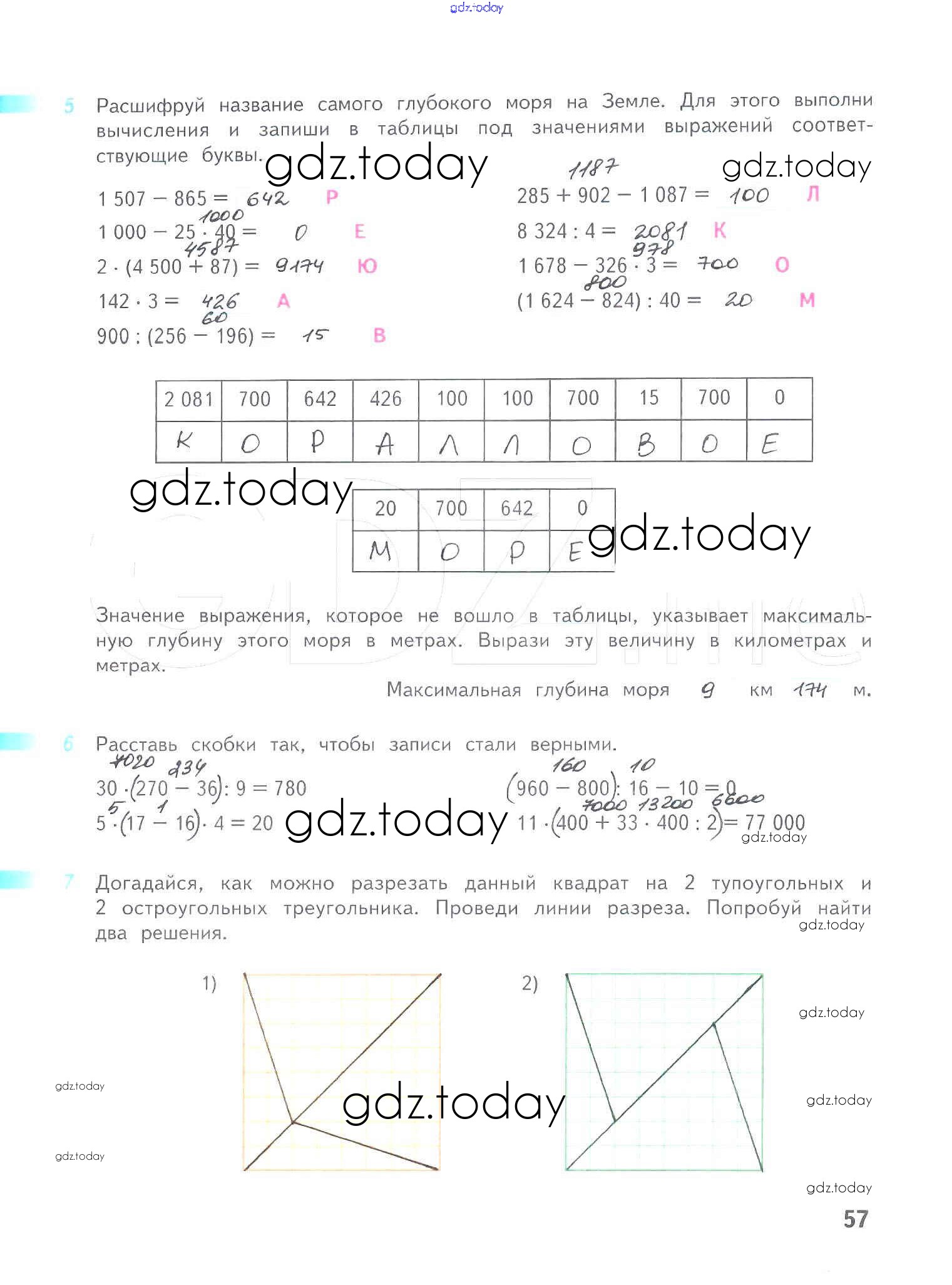 На страницах сайта gdz.today вы найдете учебный и вспомогательный материал, направленный на улучшения знаний школьной программы. ГДЗ - онлайн мир знаний Решение к части 2. Страницы 57 Рабочей тетради по Математике для 4 класса Дорофеев, Миракова Просвещение Перспектива 2017