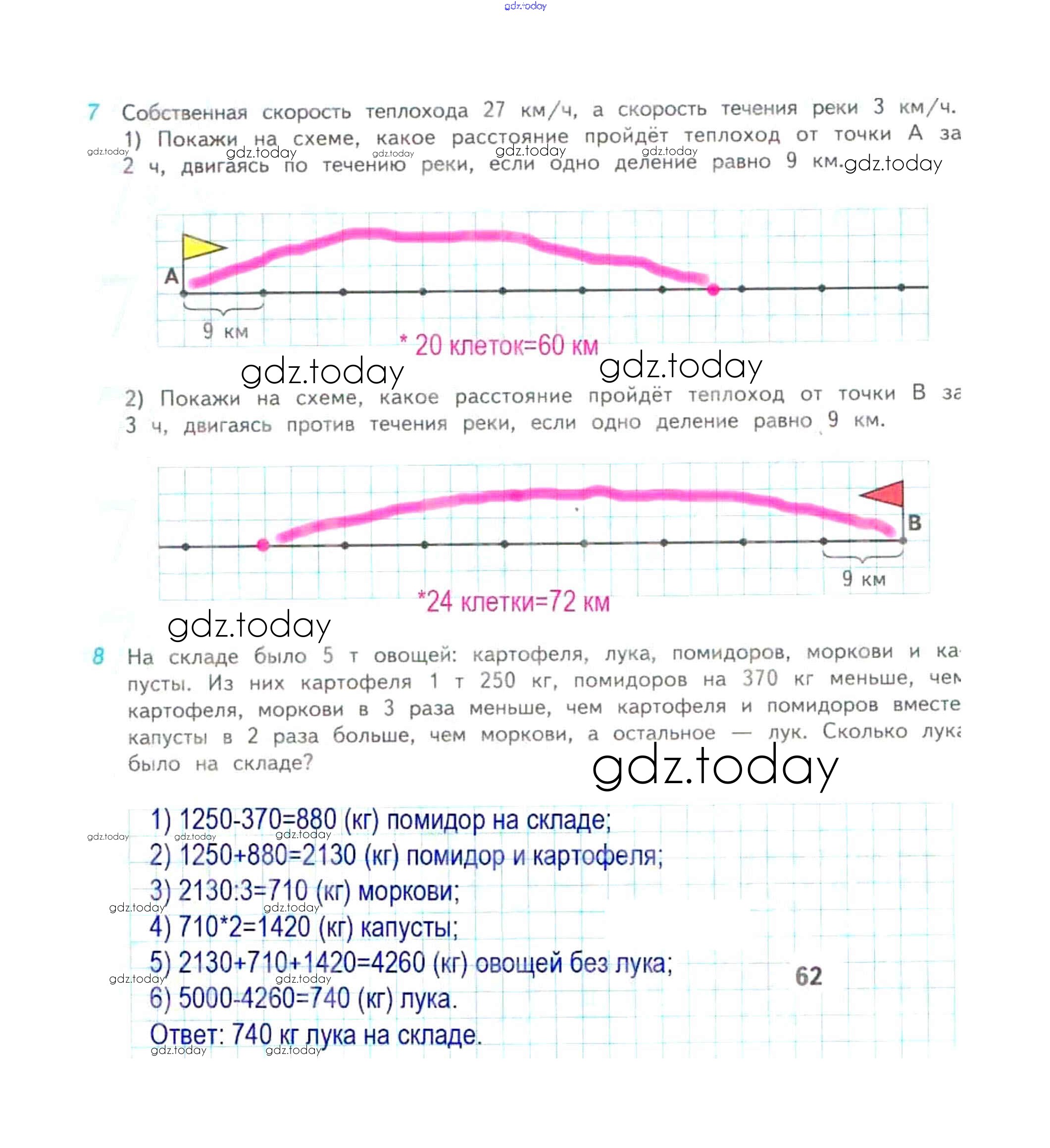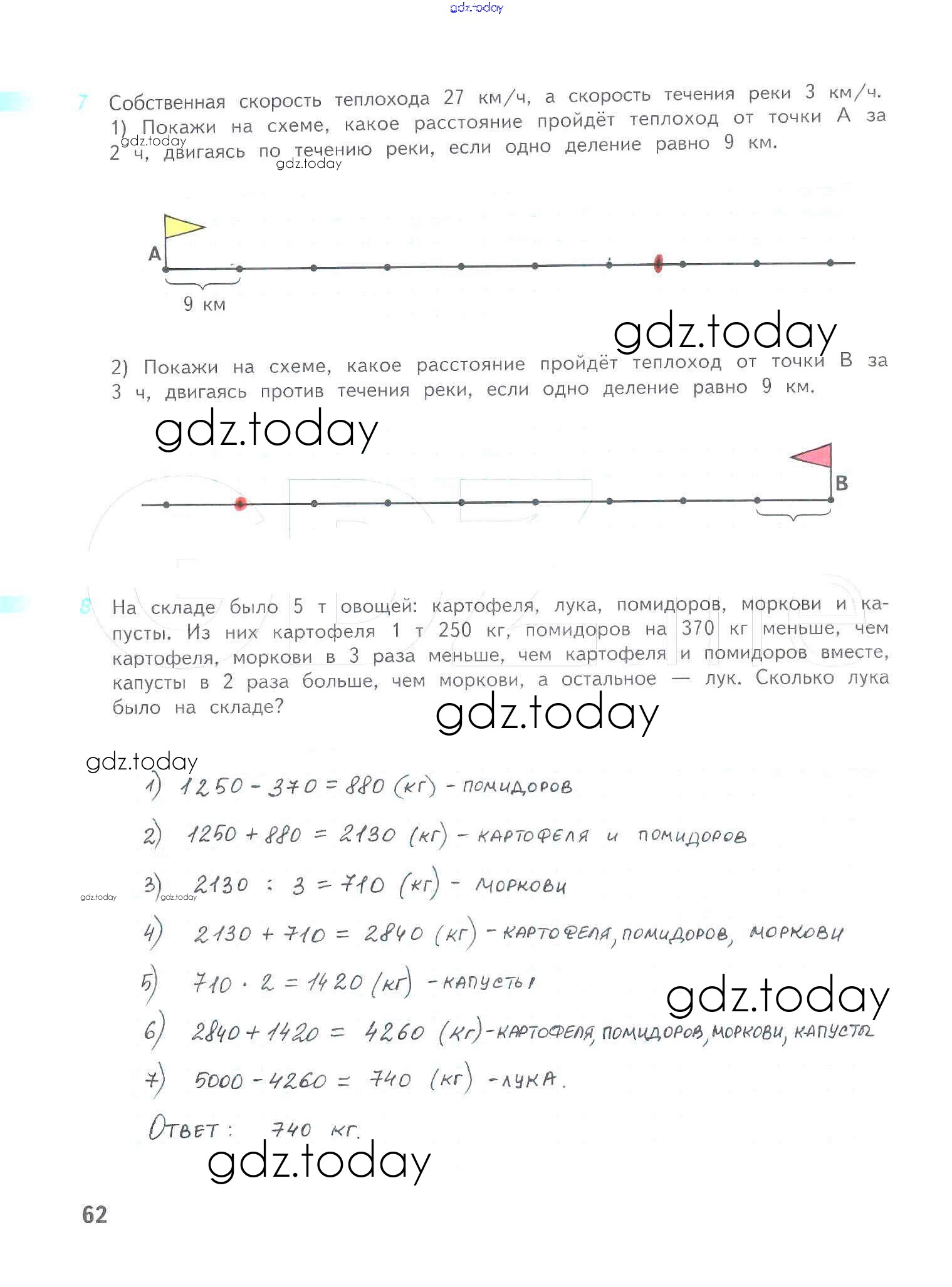 Ответы к Решение к части 2. Страницы 62 Рабочей тетради по Математике для 4 класса Дорофеев, Миракова Просвещение Перспектива 2017