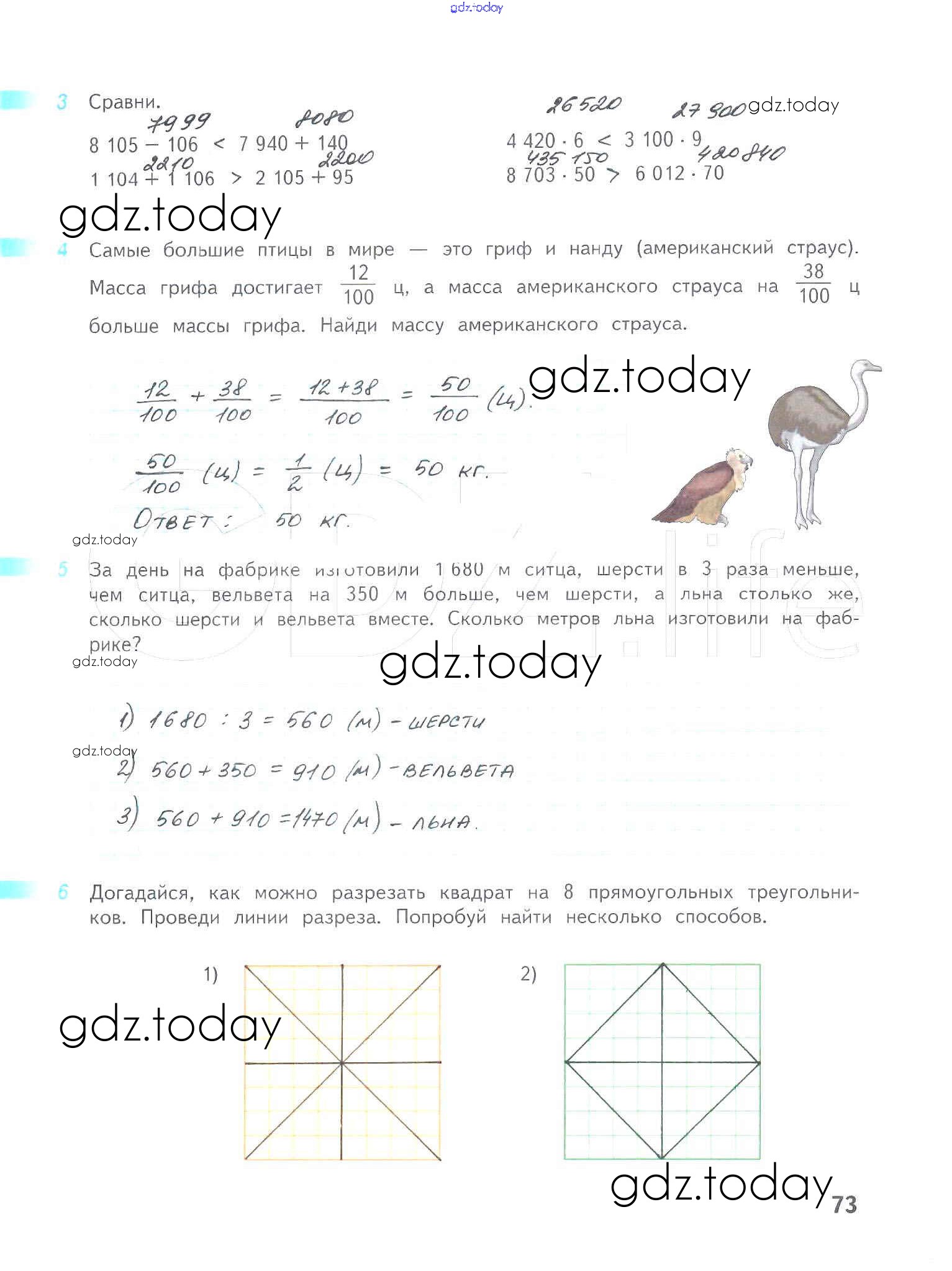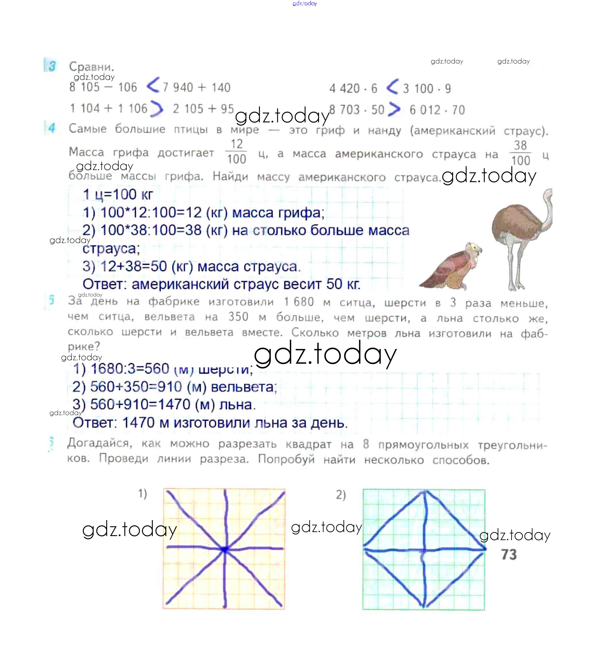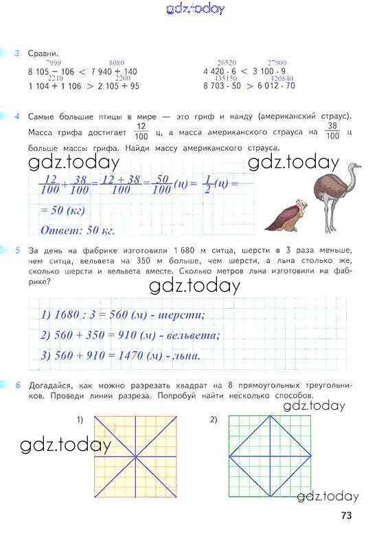 На страницах сайта gdz.today вы найдете учебный и вспомогательный материал, направленный на улучшения знаний школьной программы. ГДЗ - онлайн мир знаний Решение к части 2. Страницы 73 Рабочей тетради по Математике для 4 класса Дорофеев, Миракова Просвещение Перспектива 2017