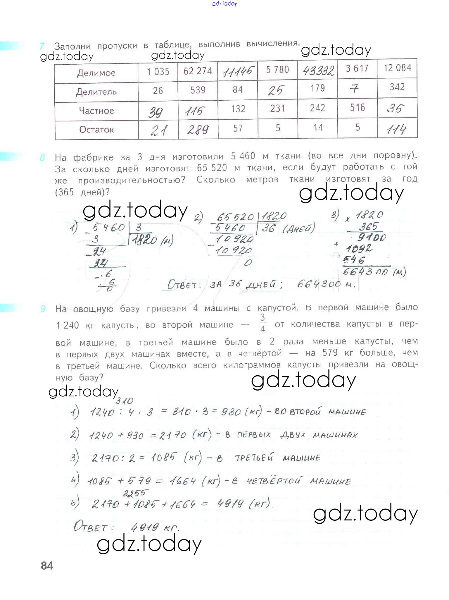 На страницах сайта gdz.today вы найдете учебный и вспомогательный материал, направленный на улучшения знаний школьной программы. ГДЗ - онлайн мир знаний Решение к части 2. Страницы 84 Рабочей тетради по Математике для 4 класса Дорофеев, Миракова Просвещение Перспектива 2017