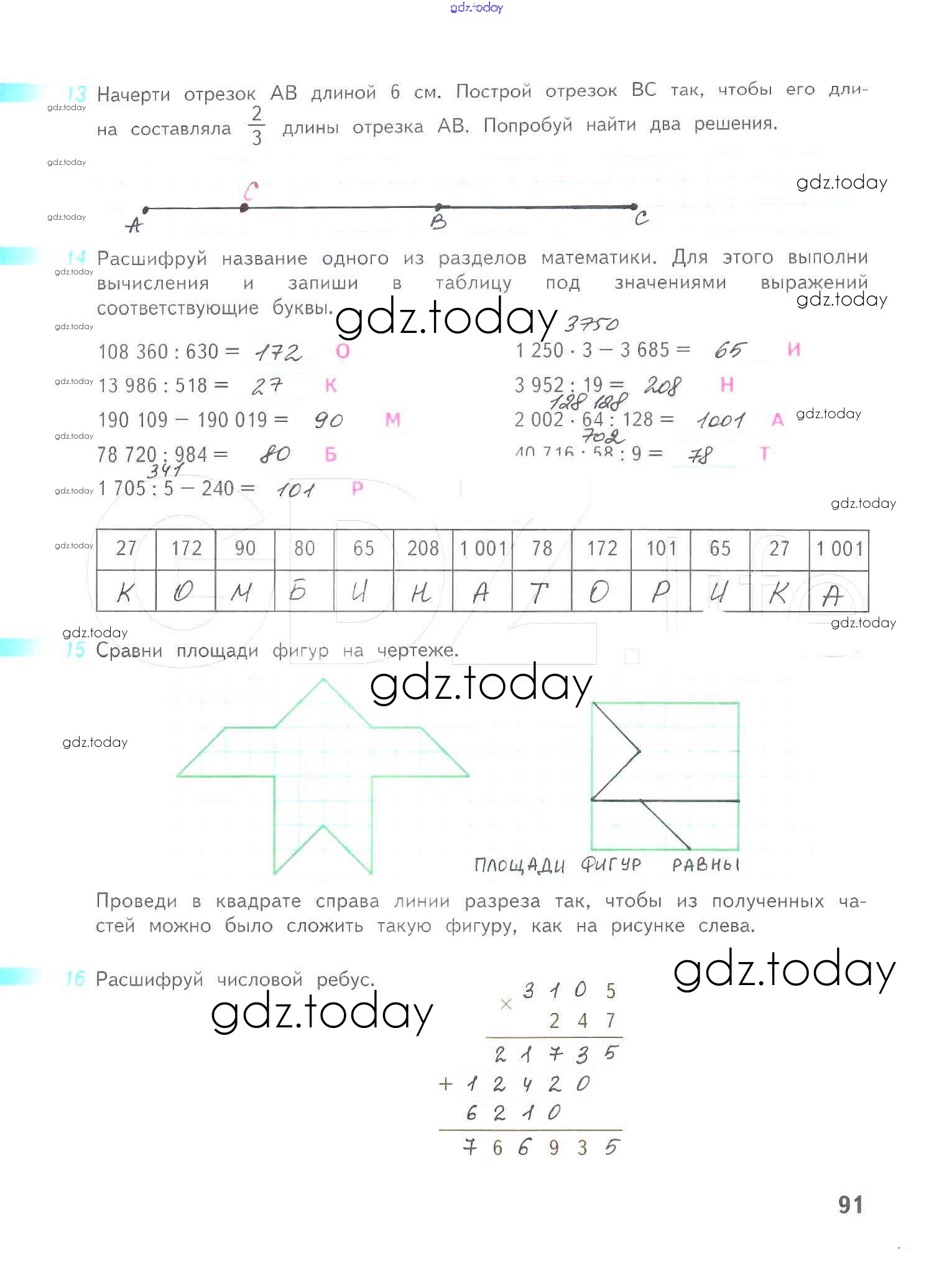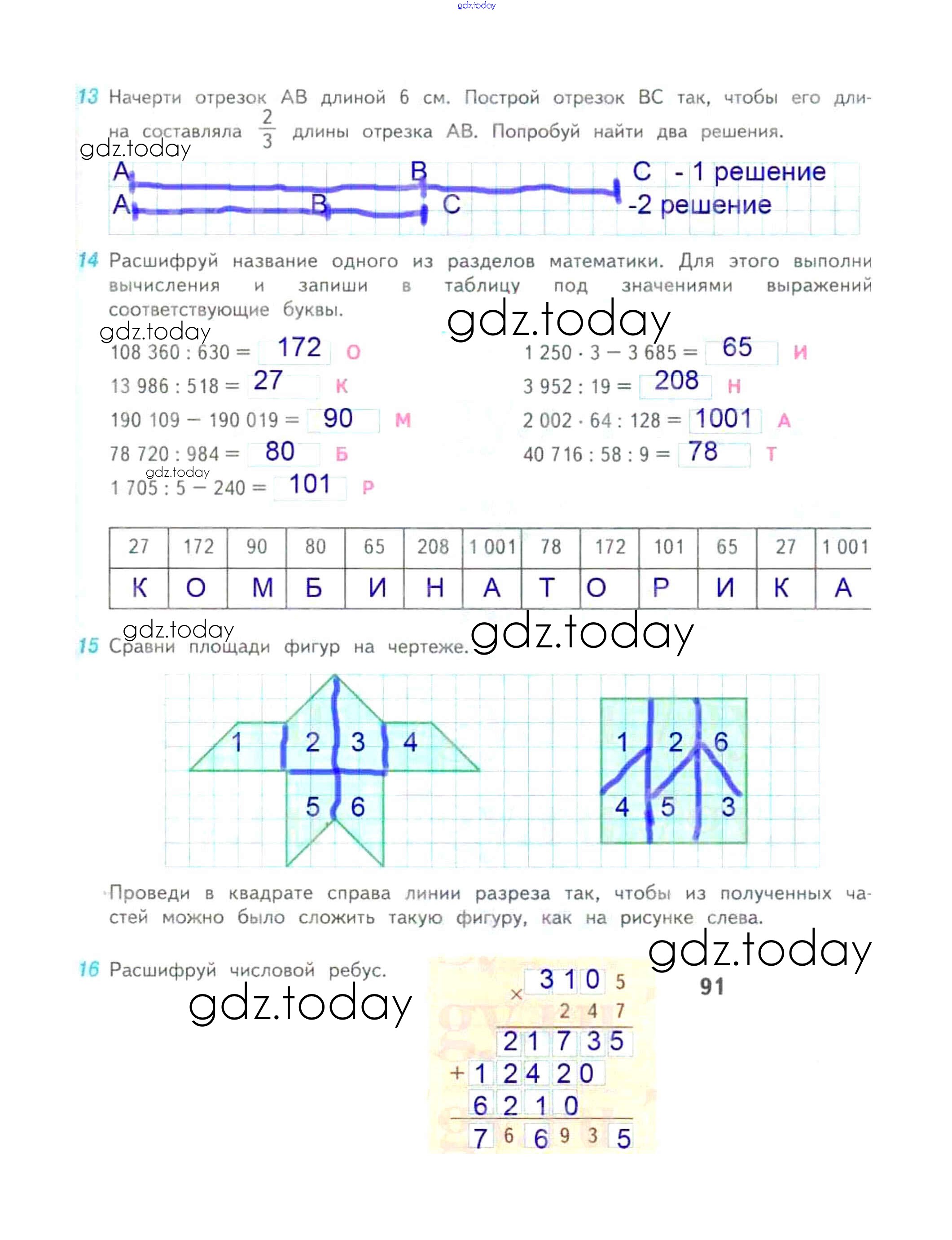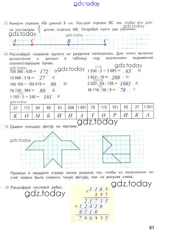 Ответы к Решение к части 2. Страницы 91 Рабочей тетради по Математике для 4 класса Дорофеев, Миракова Просвещение Перспектива 2017