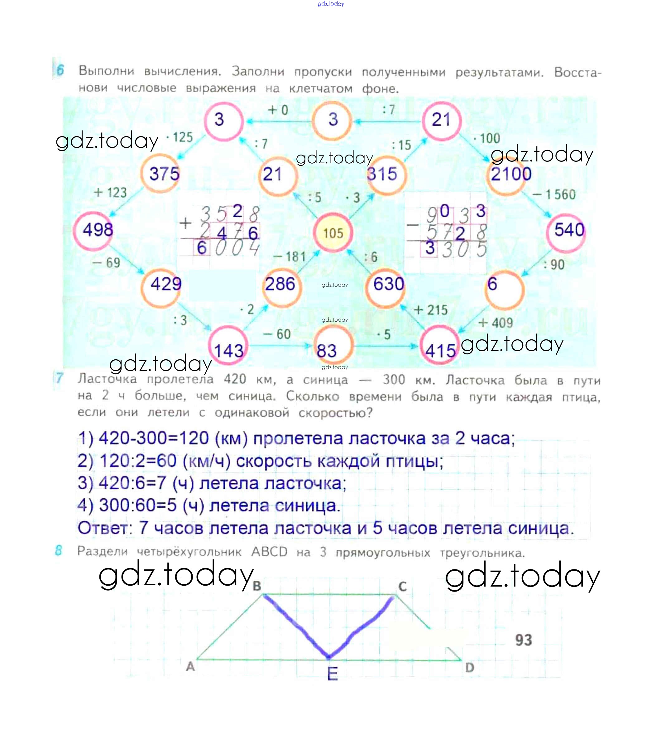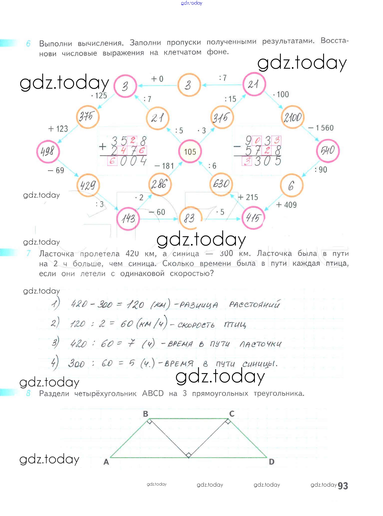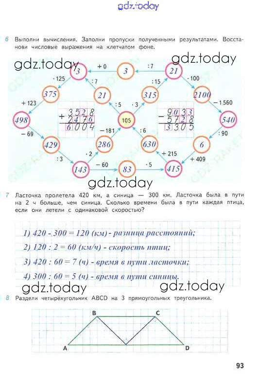 На страницах сайта gdz.today вы найдете учебный и вспомогательный материал, направленный на улучшения знаний школьной программы. ГДЗ - онлайн мир знаний Решение к части 2. Страницы 93 Рабочей тетради по Математике для 4 класса Дорофеев, Миракова Просвещение Перспектива 2017