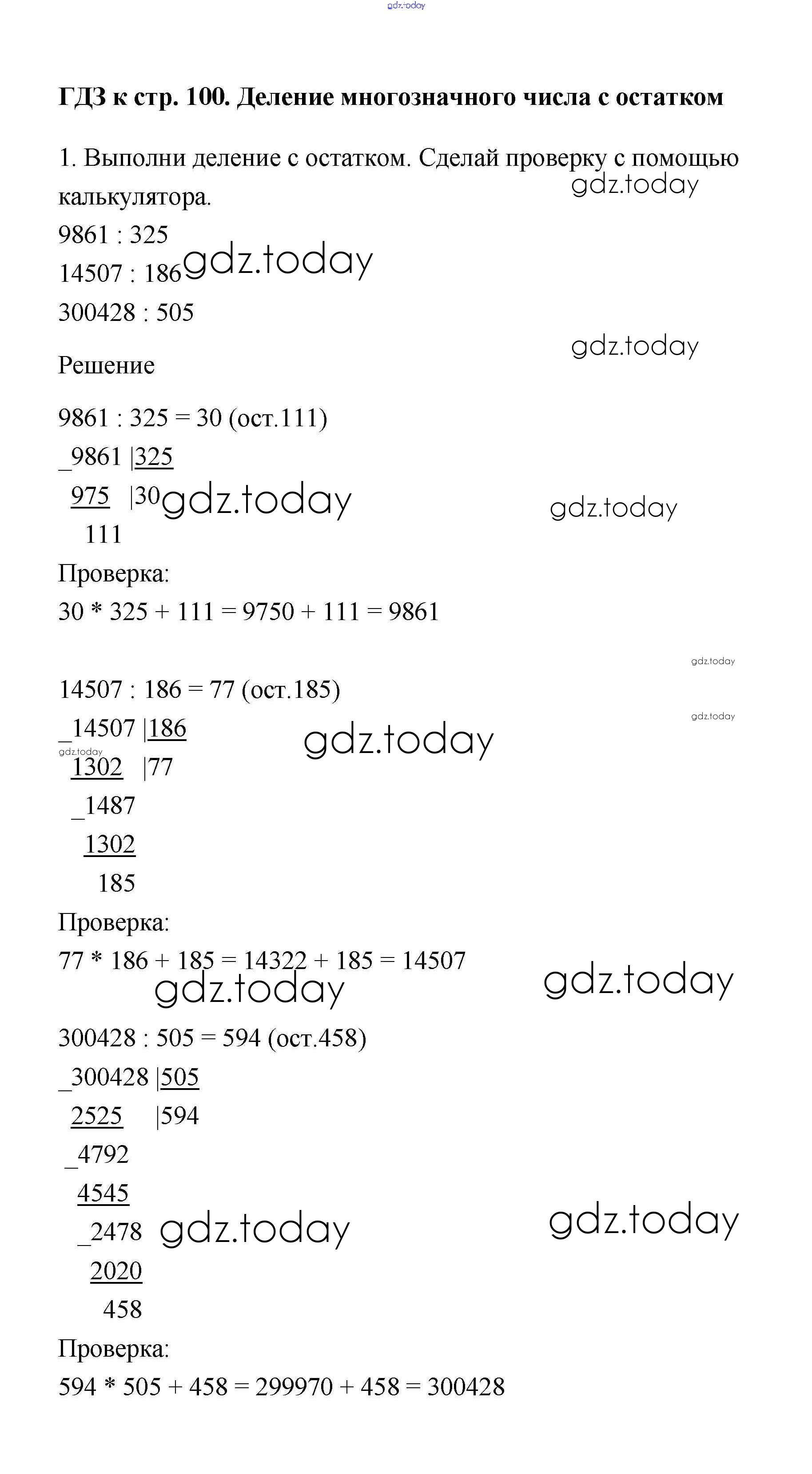 Ответы к Страница 100 Решение к части 2 1 Учебнику по Математике для 4 класса Дорофеев, Миракова Просвещение Перспектива 2015
